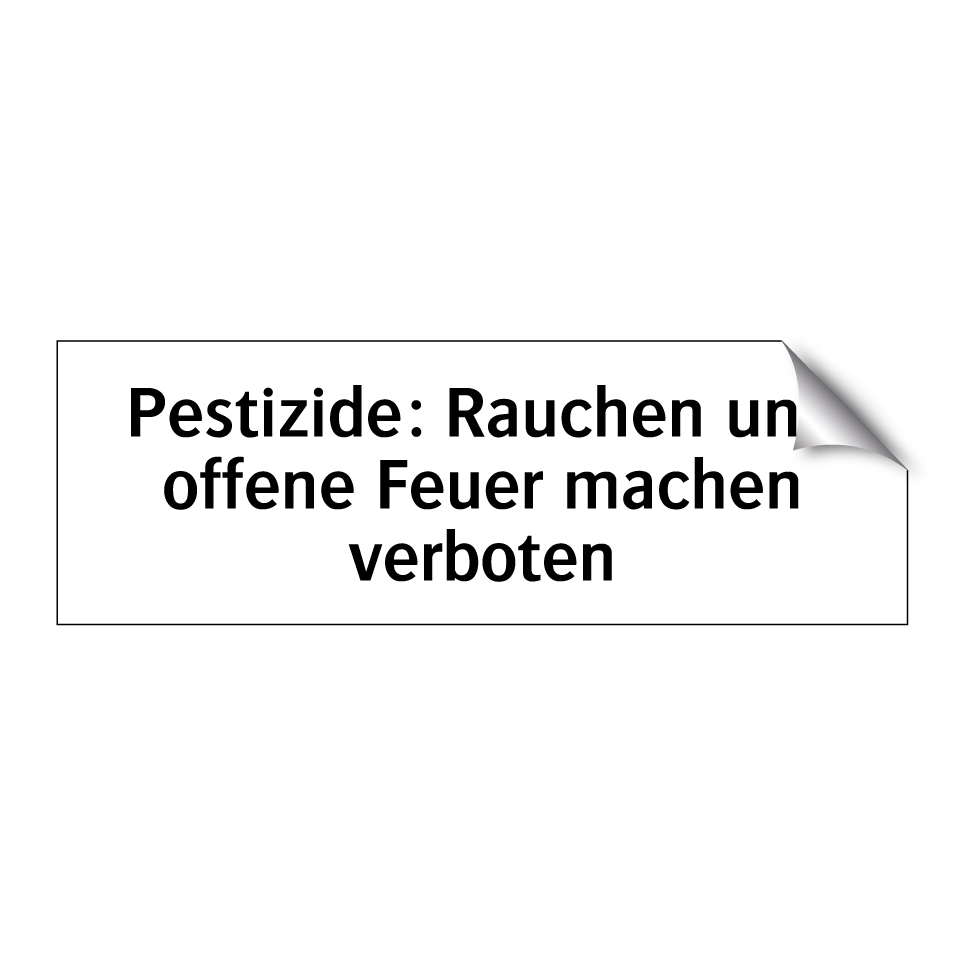 Verbotsschild mit dem Text Pestizide: Rauchen und offene Feuer machen verboten