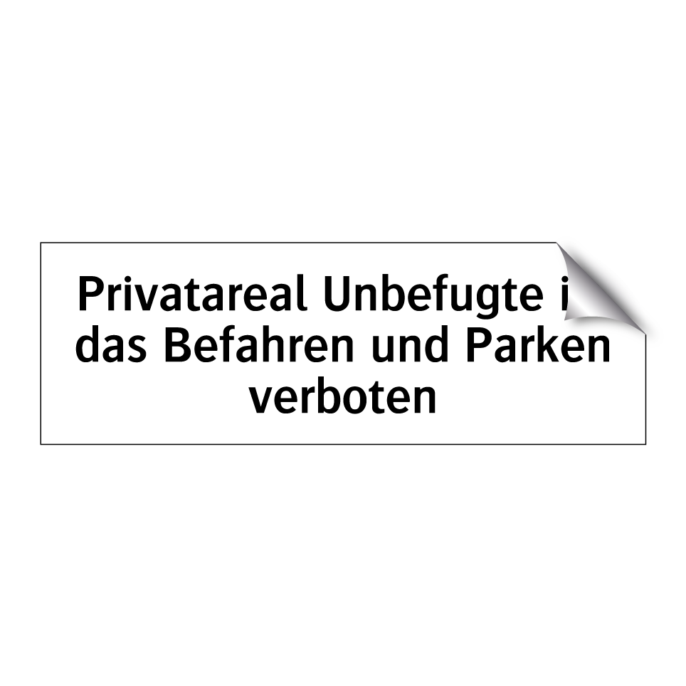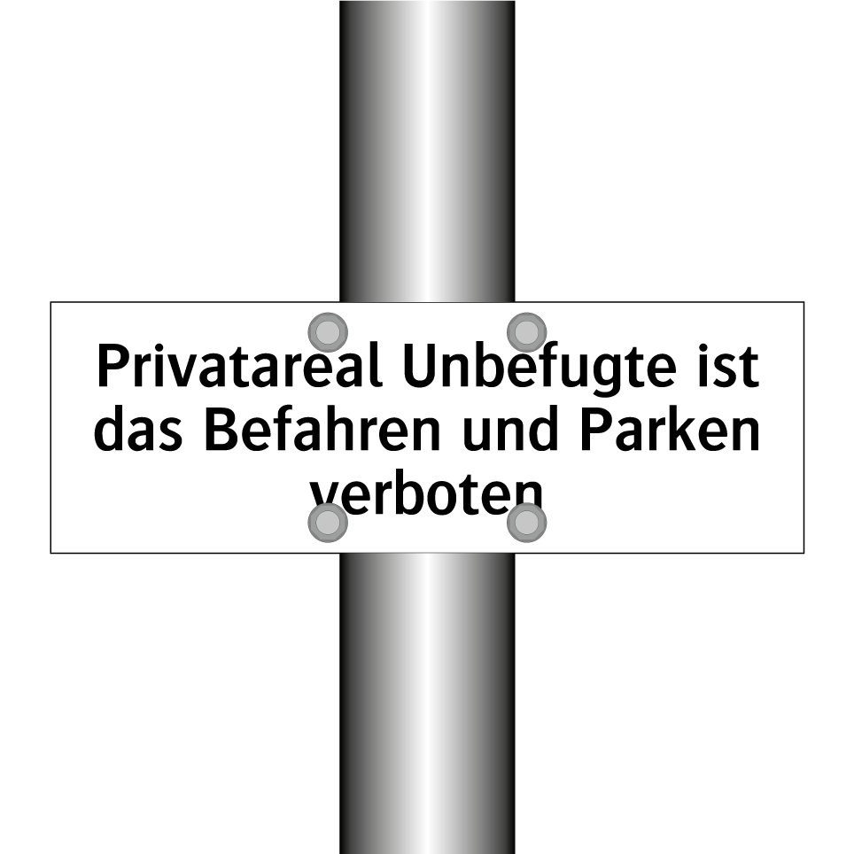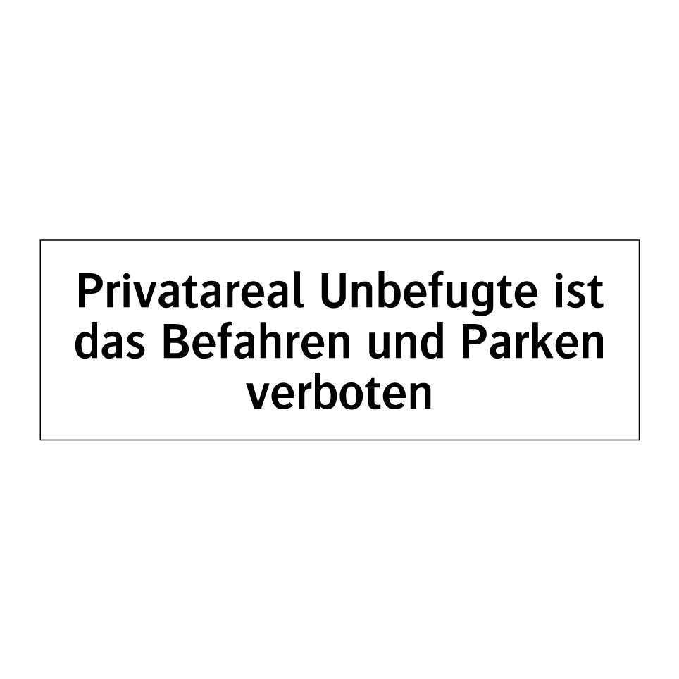 Verbotsschild mit dem Text Privatareal Unbefugte ist das Befahren und Parken verboten