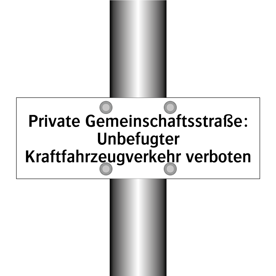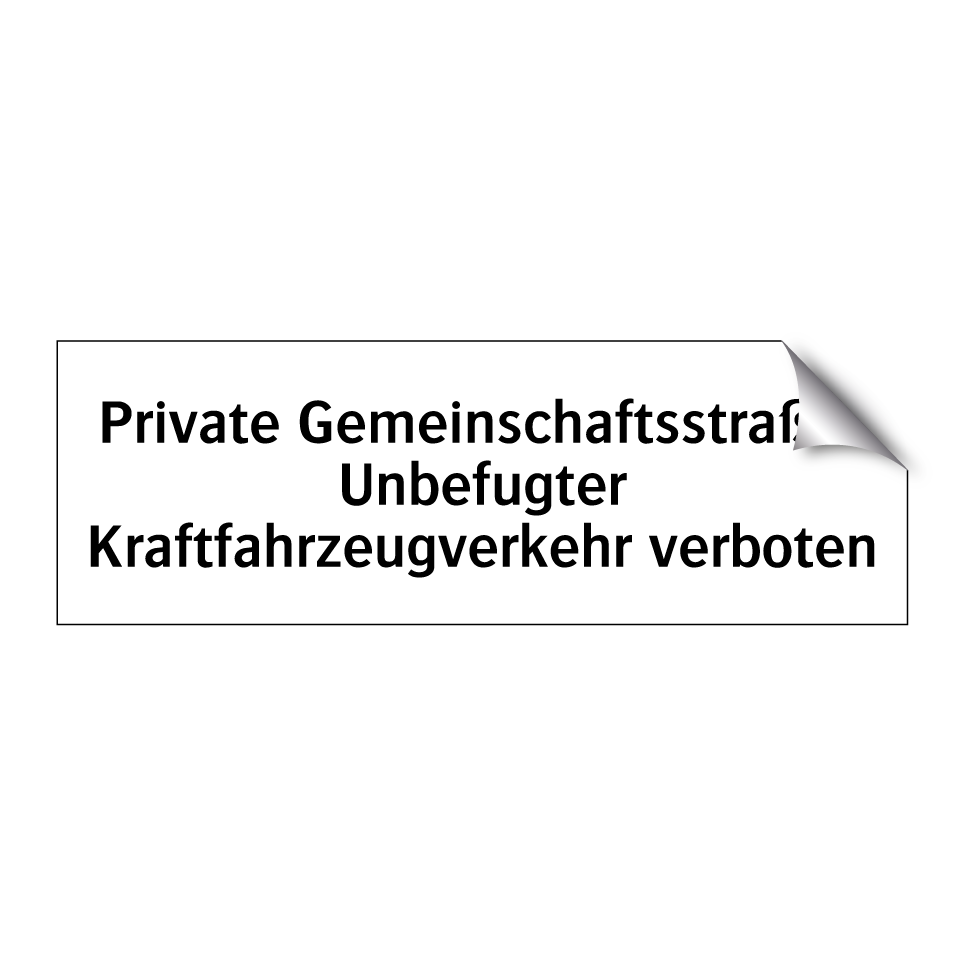 Verbotsschild mit dem Text Private Gemeinschaftsstraße: Unbefugter Kraftfahrzeugverkehr verboten