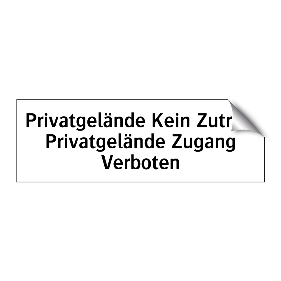 Verbotsschild mit dem Text Privatgelände Kein Zutritt. Privatgelände Zugang Verboten