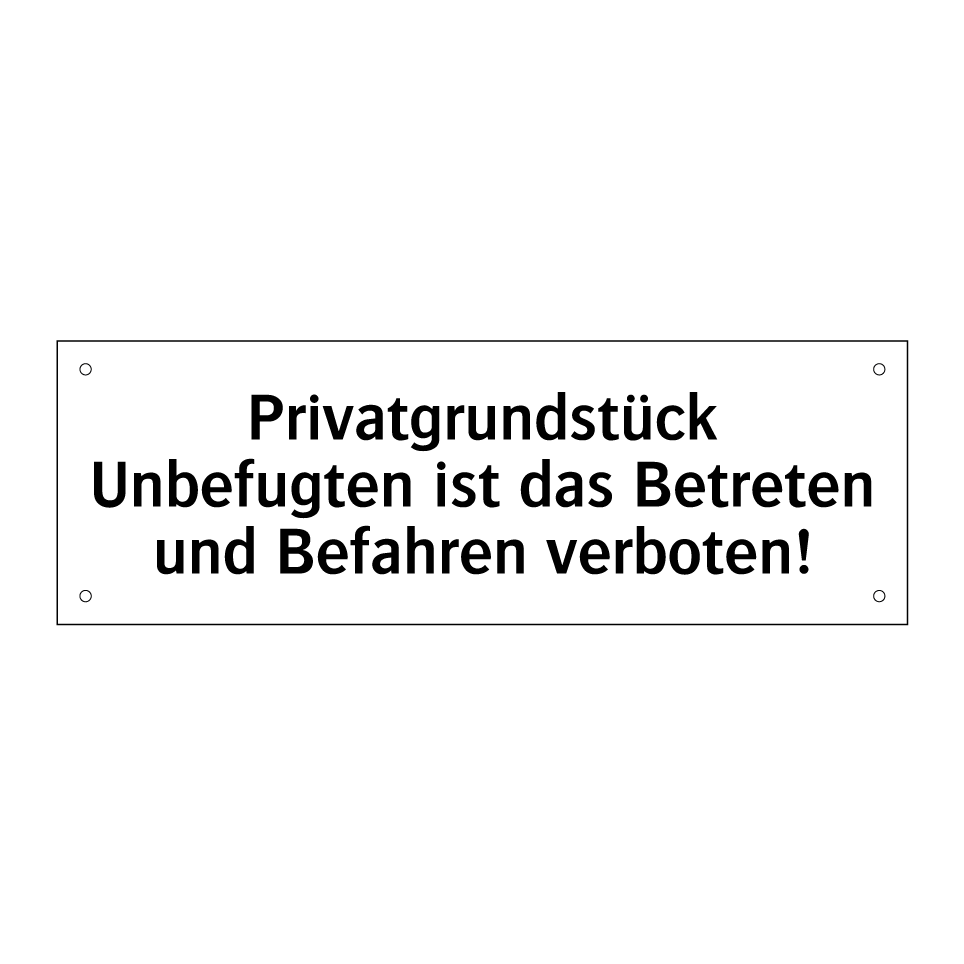 Verbotsschild mit dem Text Privatgrundstück Unbefugten ist das Betreten und Befahren verboten!