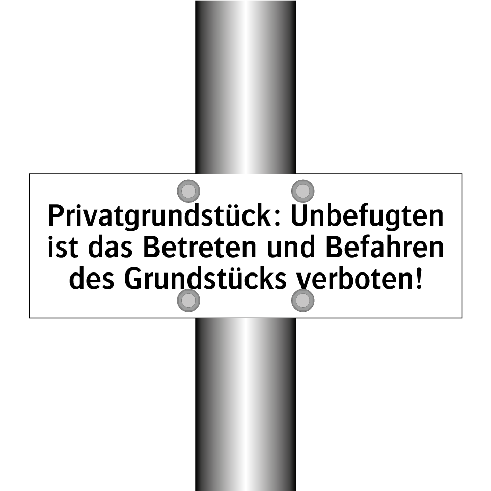 Verbotsschild mit dem Text Privatgrundstück: Unbefugten ist das Betreten und Befahren des Grundstücks verboten!