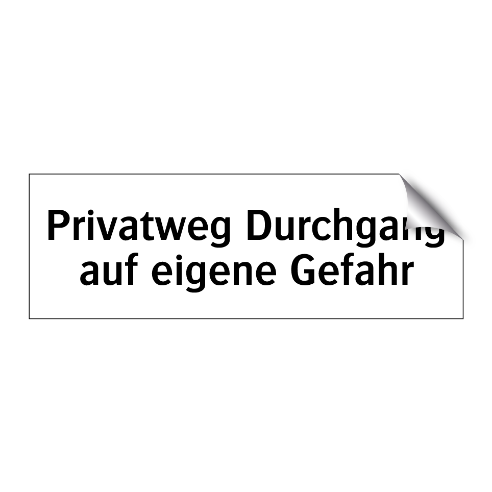 Verbotsschild mit dem Text Privatweg Durchgang auf eigene Gefahr