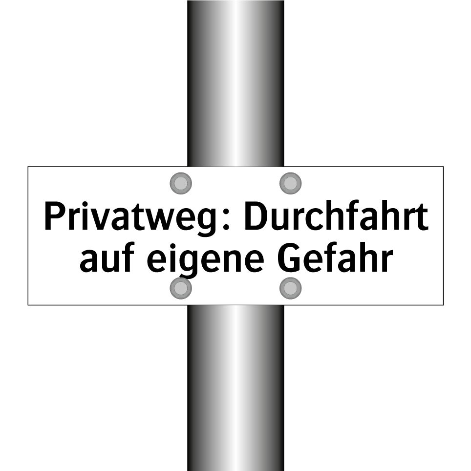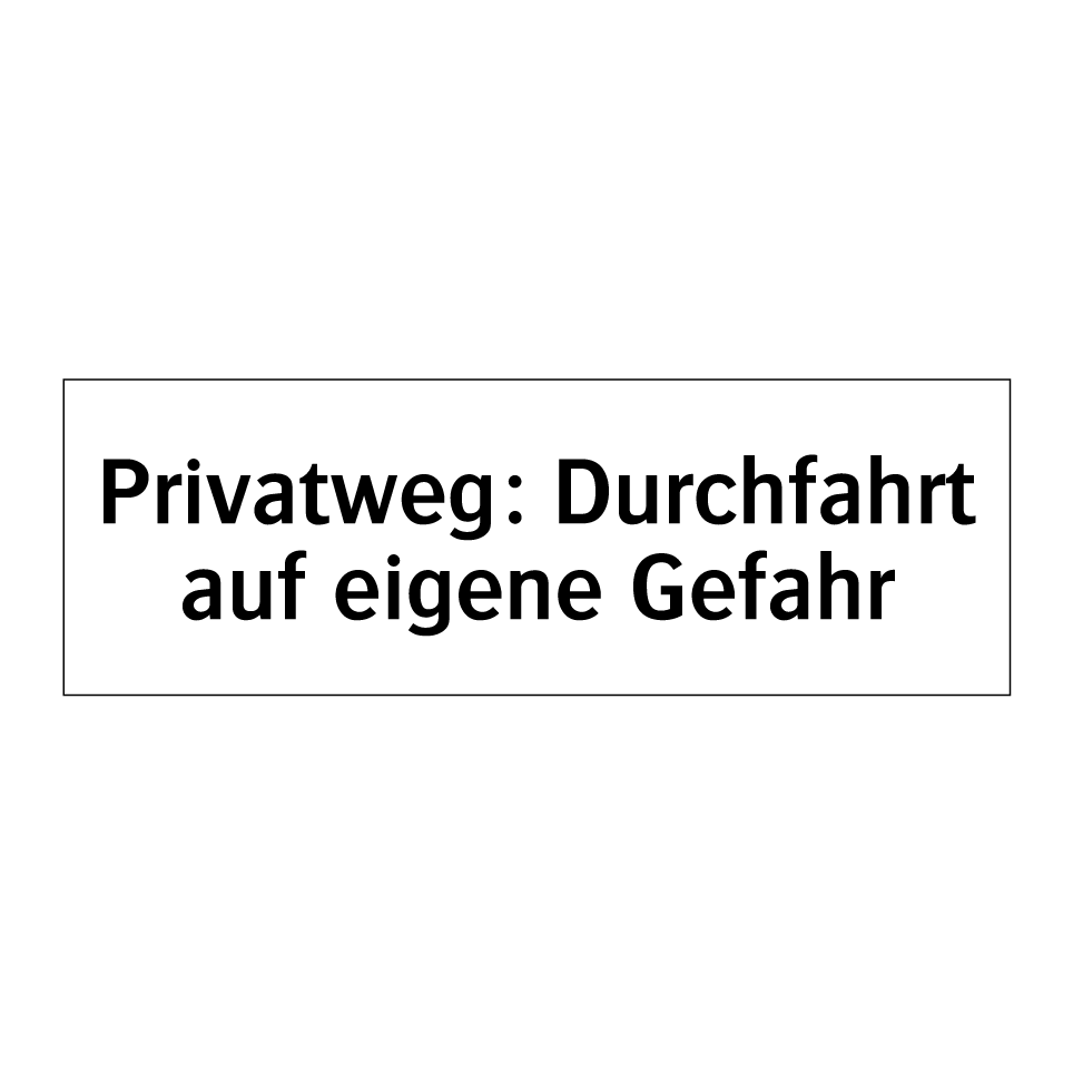 Verbotsschild mit dem Text Privatweg: Durchfahrt auf eigene Gefahr