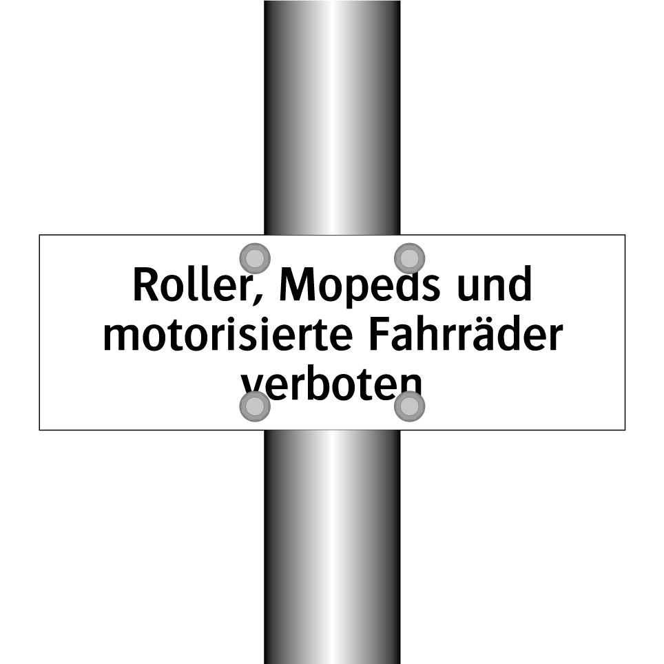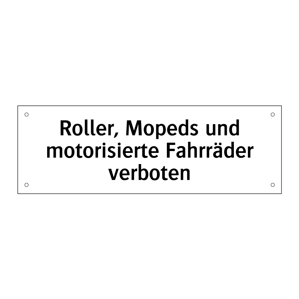Verbotsschild mit dem Text Roller, Mopeds und motorisierte Fahrräder verboten
