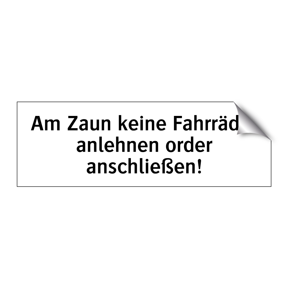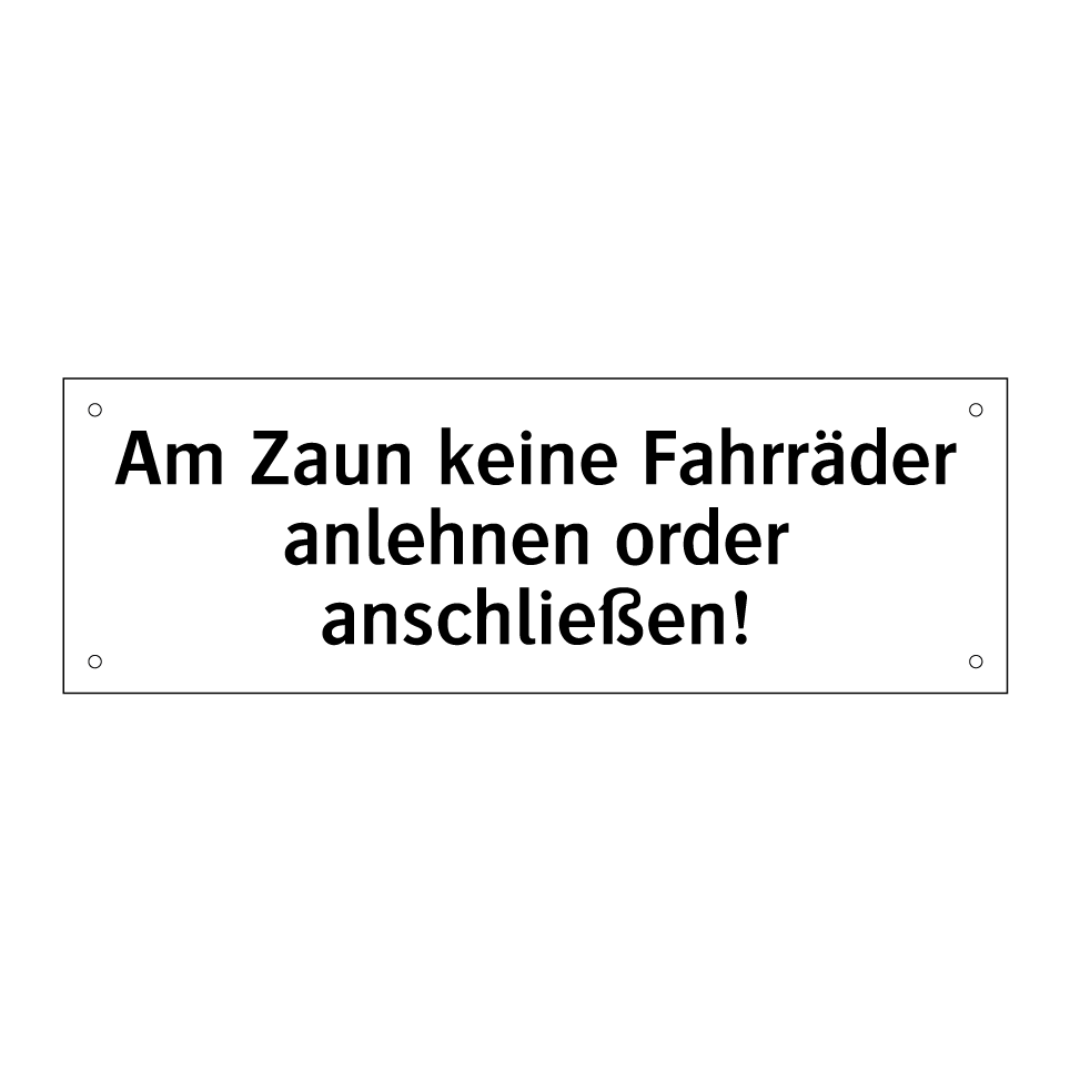 Verbotsschild mit dem Text Am Zaun keine Fahrräder anlehnen order anschließen!