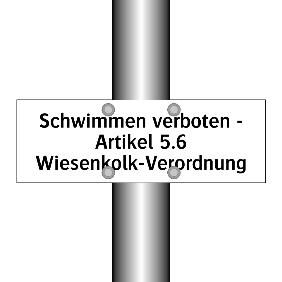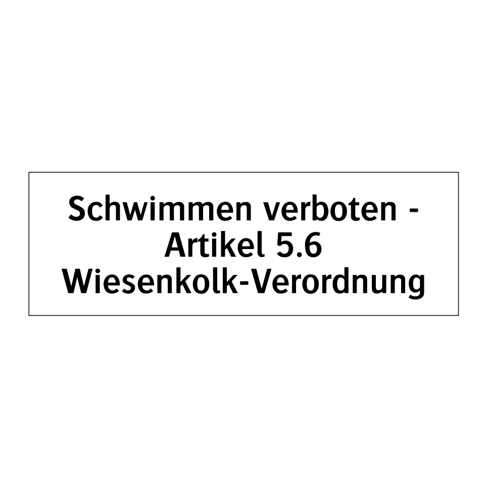 Verbotsschild mit dem Text Schwimmen verboten - Artikel 5.6 Wiesenkolk-Verordnung