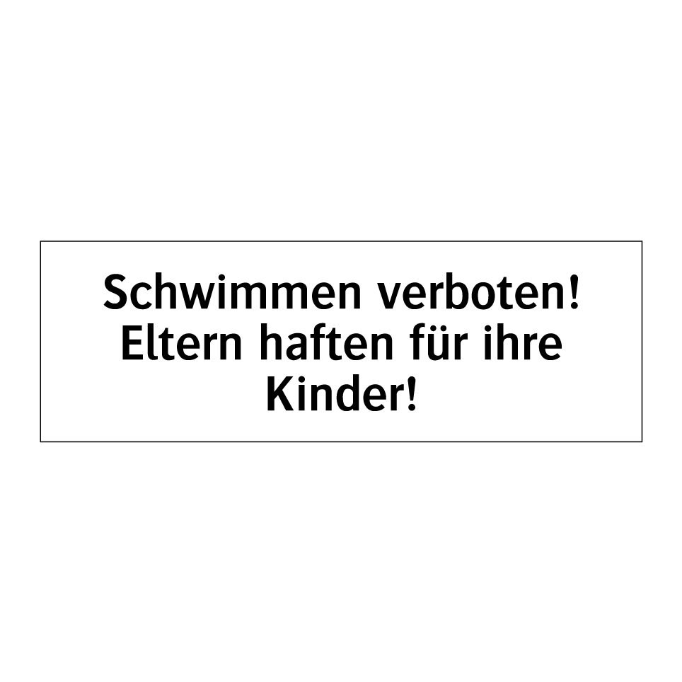 Verbotsschild mit dem Text Schwimmen verboten! Eltern haften für ihre Kinder!