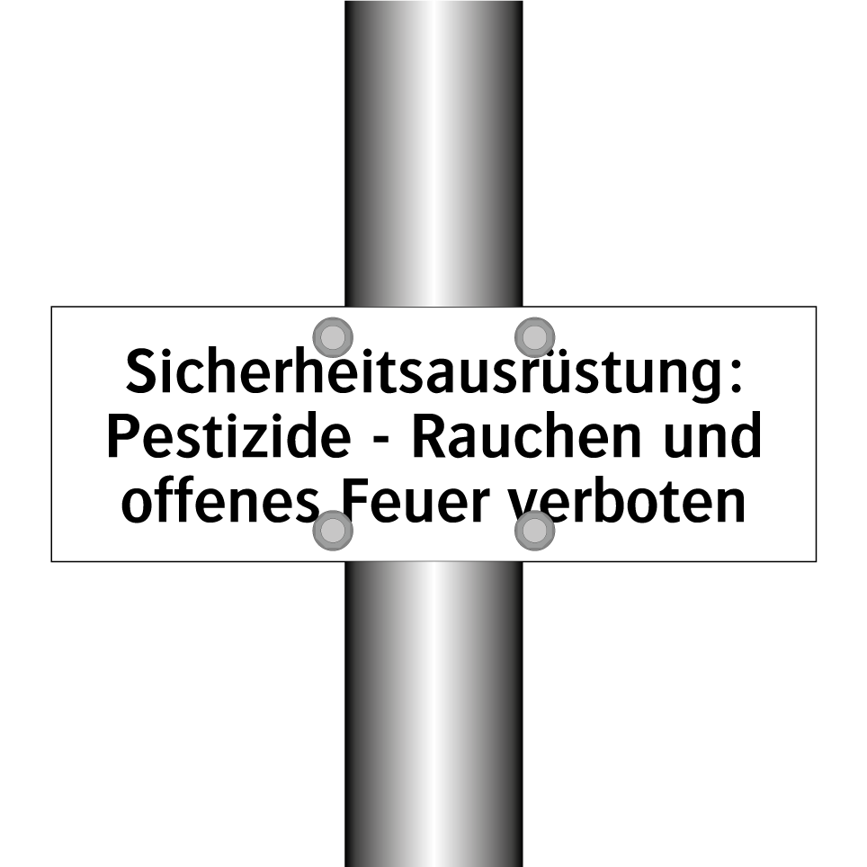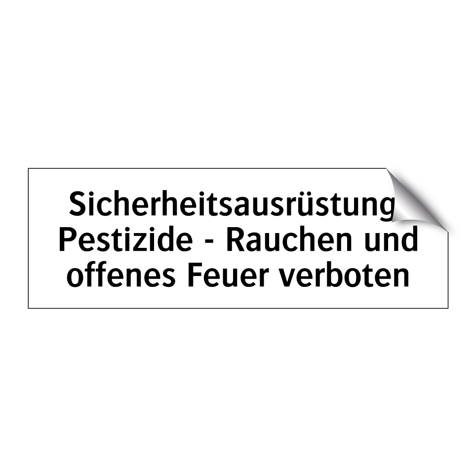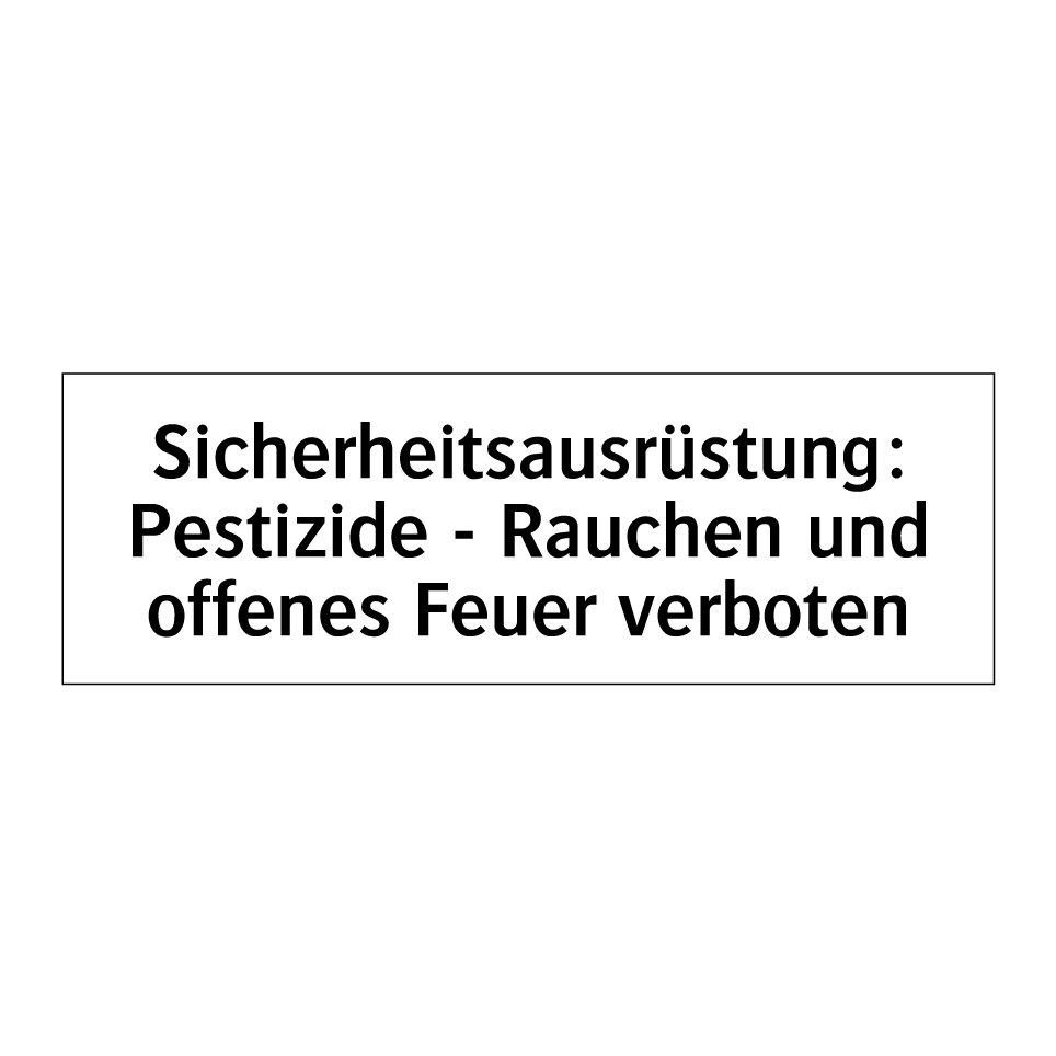 Verbotsschild mit dem Text Sicherheitsausrüstung: Pestizide - Rauchen und offenes Feuer verboten