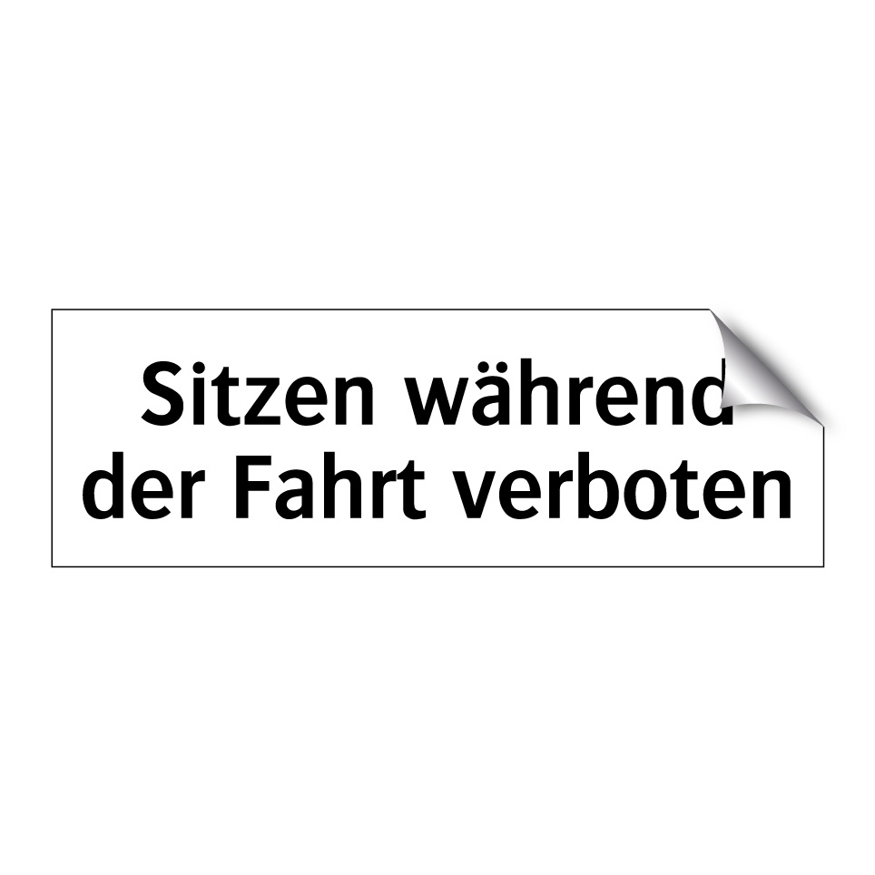Verbotsschild mit dem Text Sitzen während der Fahrt verboten