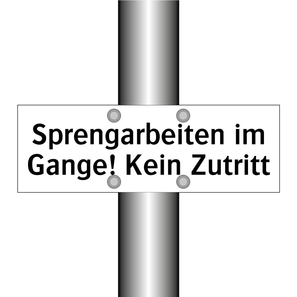 Verbotsschild mit dem Text Sprengarbeiten im Gange! Kein Zutritt