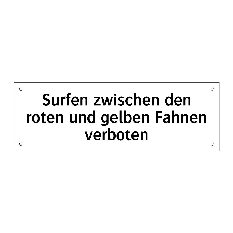 Verbotsschild mit dem Text Surfen zwischen den roten und gelben Fahnen verboten