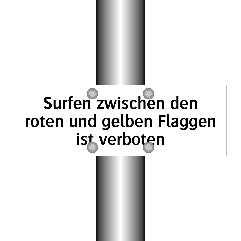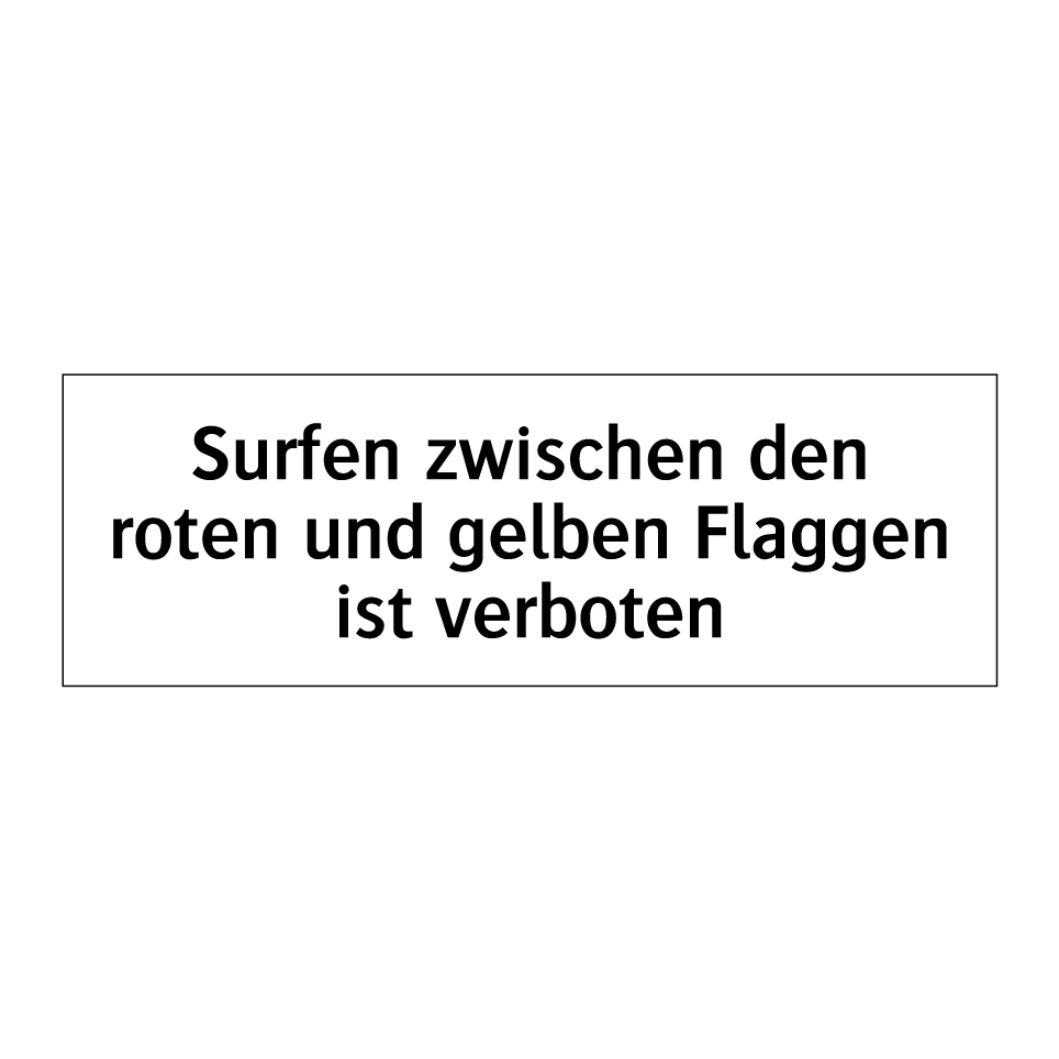 Verbotsschild mit dem Text Surfen zwischen den roten und gelben Flaggen ist verboten