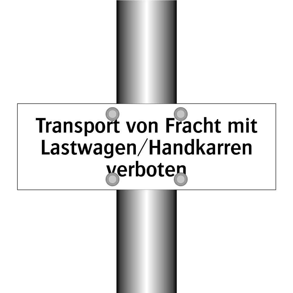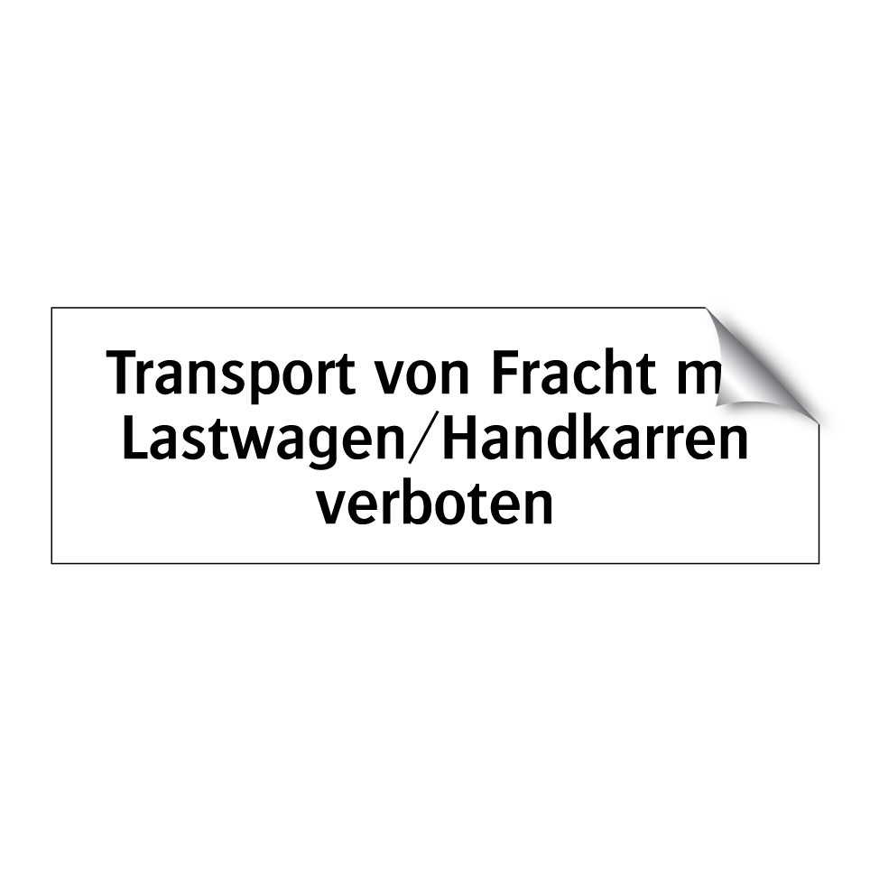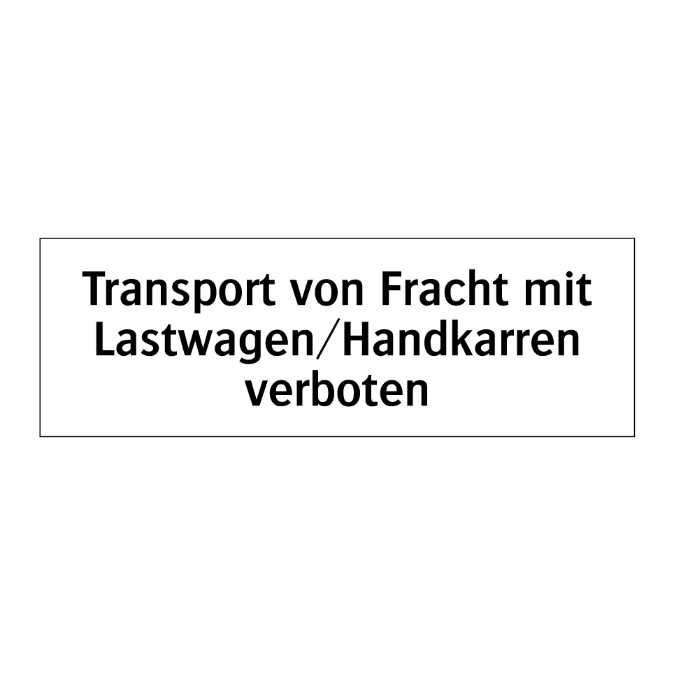 Verbotsschild mit dem Text Transport von Fracht mit Lastwagen/Handkarren verboten
