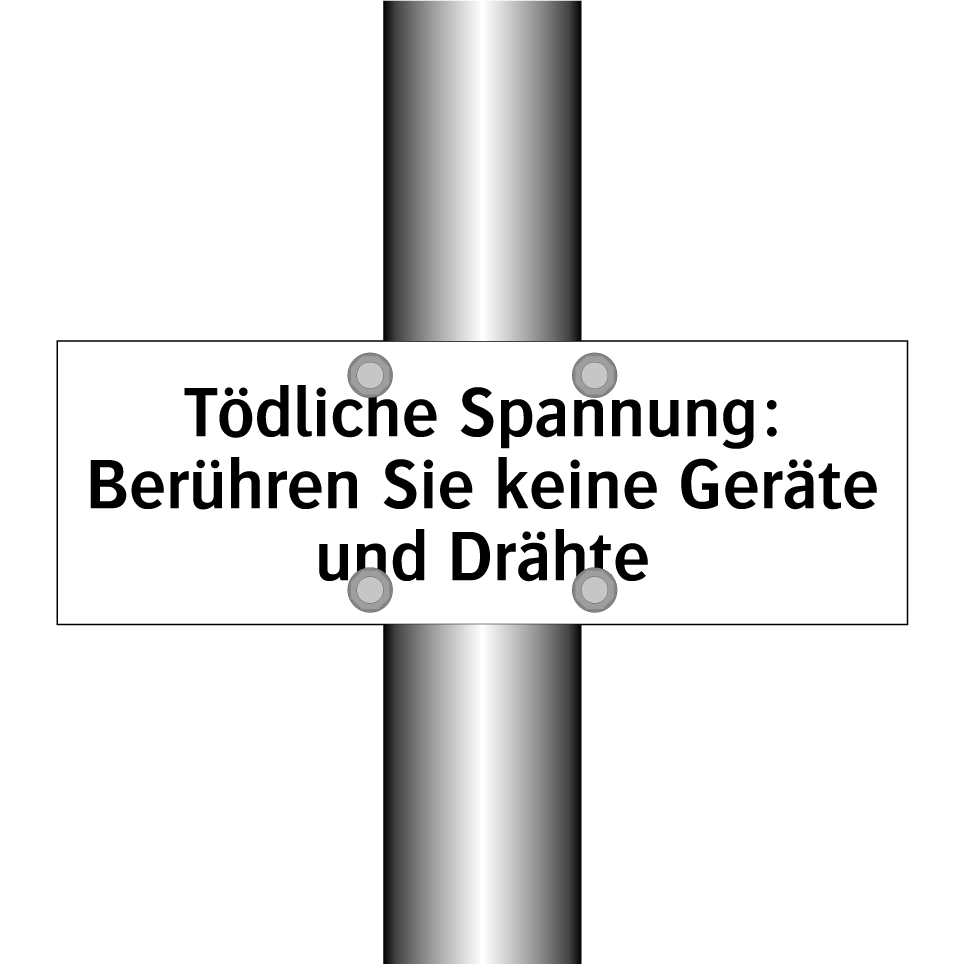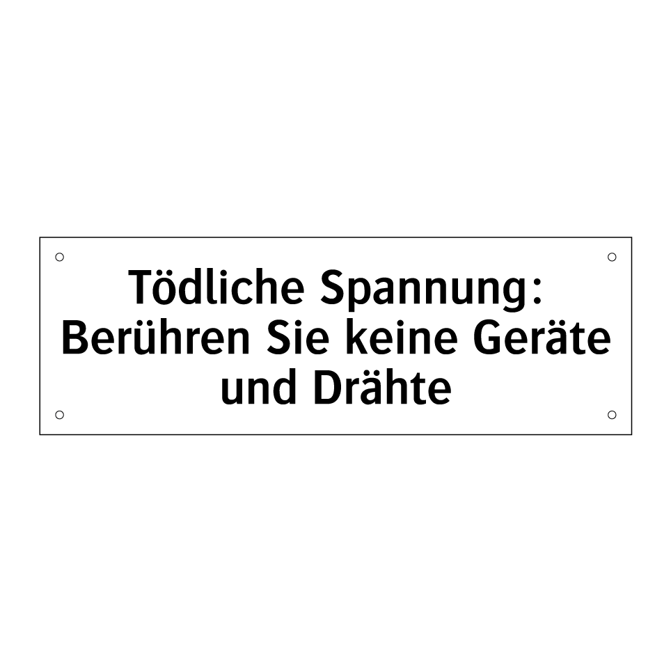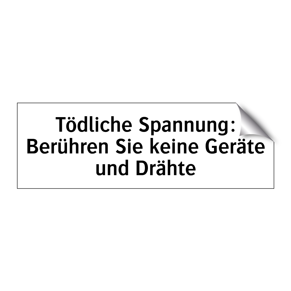 Verbotsschild mit dem Text Tödliche Spannung: Berühren Sie keine Geräte und Drähte