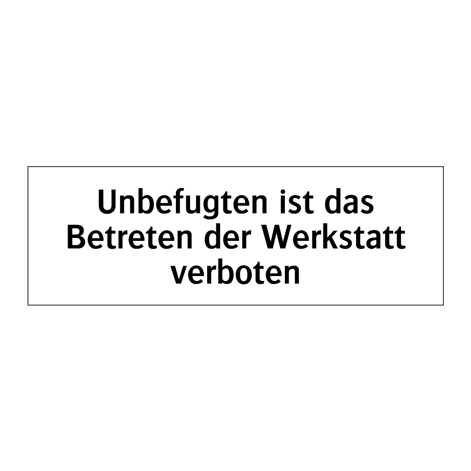 Verbotsschild mit dem Text Unbefugten ist das Betreten der Werkstatt verboten