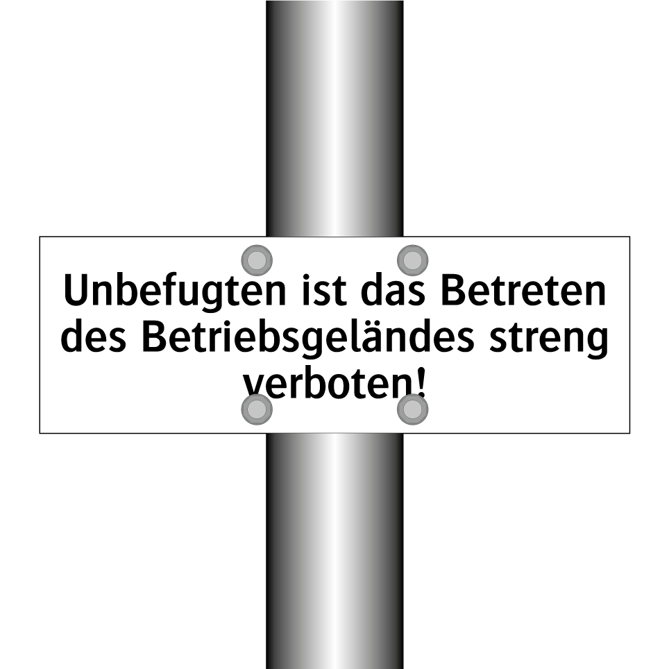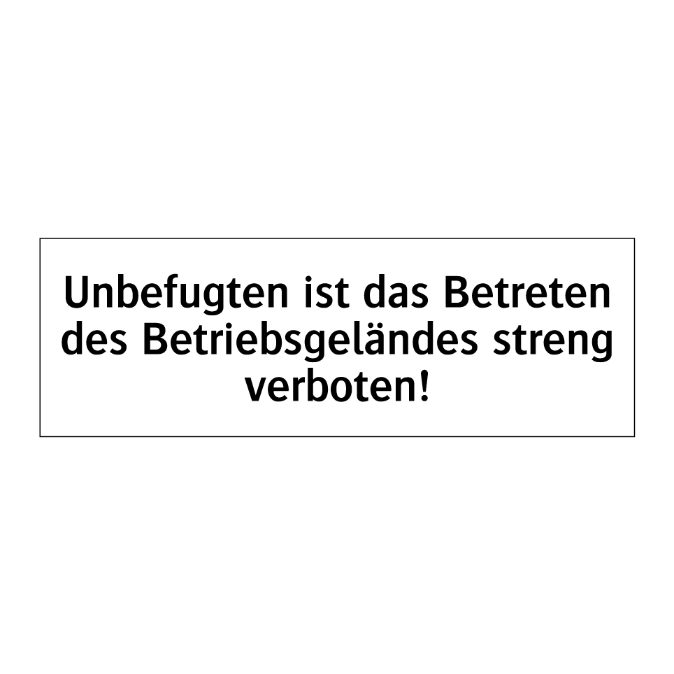 Verbotsschild mit dem Text Unbefugten ist das Betreten des Betriebsgeländes streng verboten!