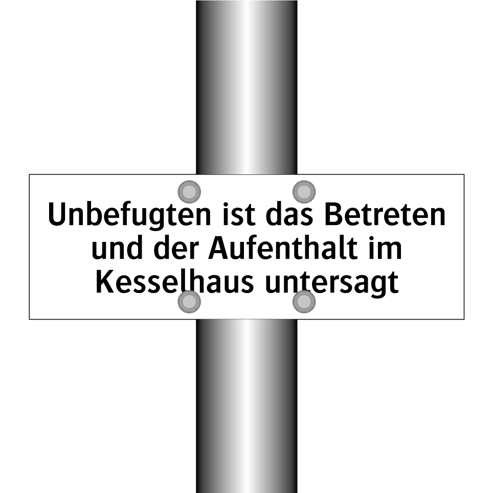 Verbotsschild mit dem Text Unbefugten ist das Betreten und der Aufenthalt im Kesselhaus untersagt