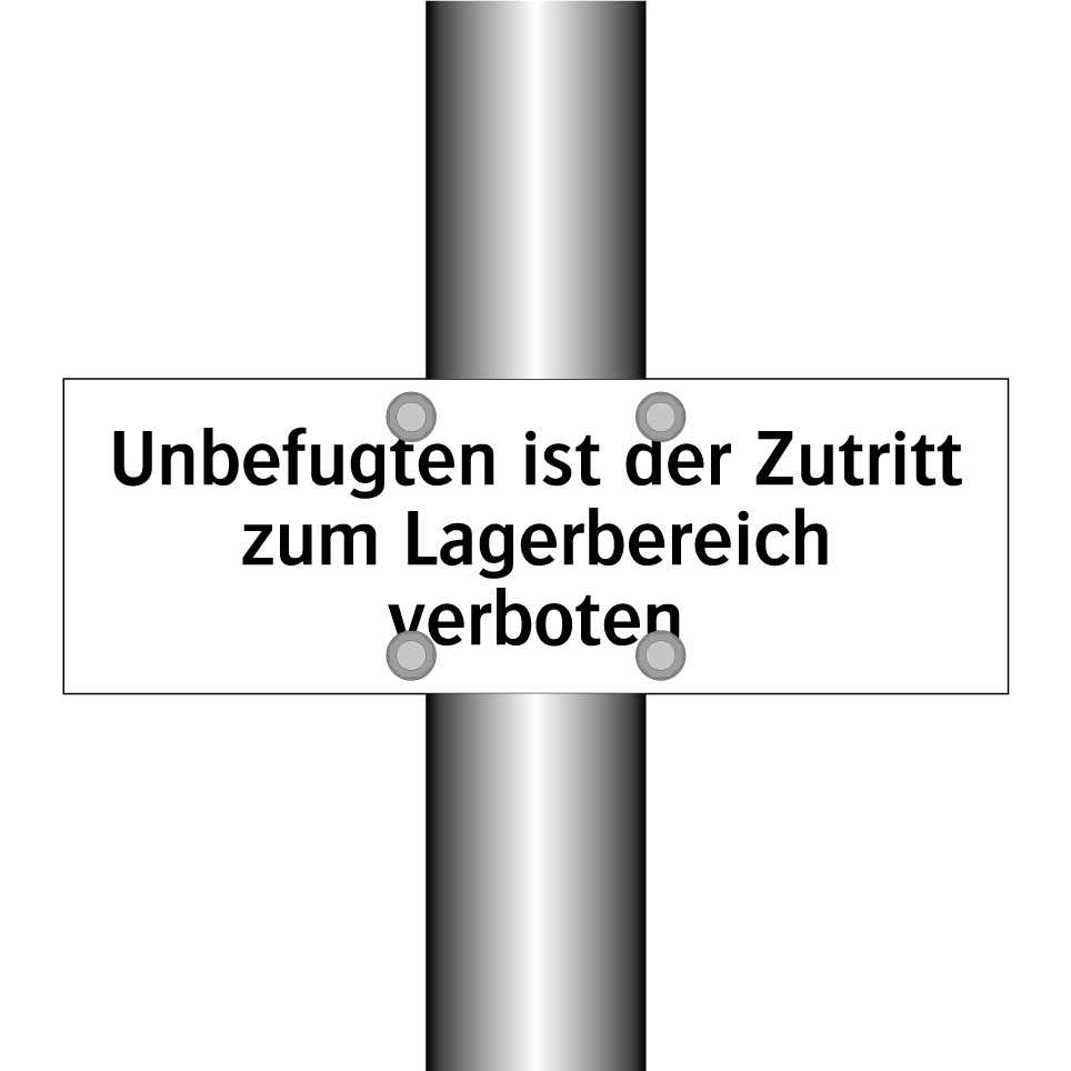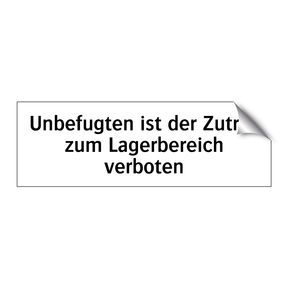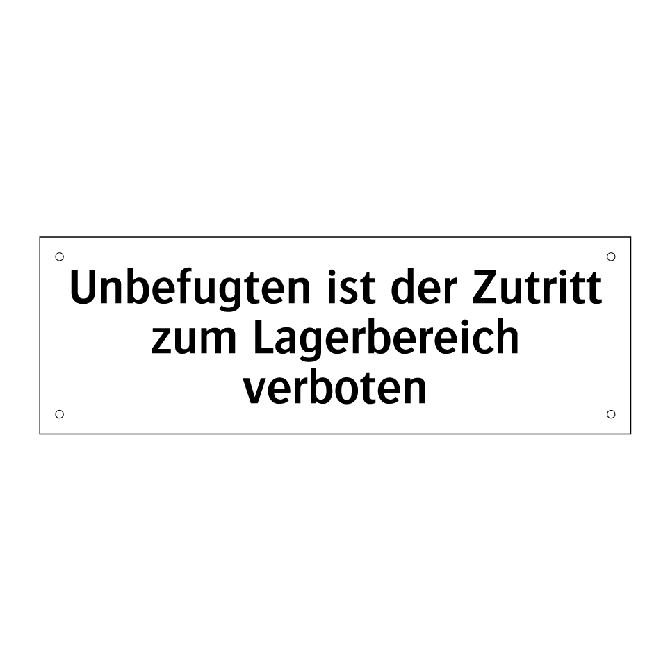 Verbotsschild mit dem Text Unbefugten ist der Zutritt zum Lagerbereich verboten