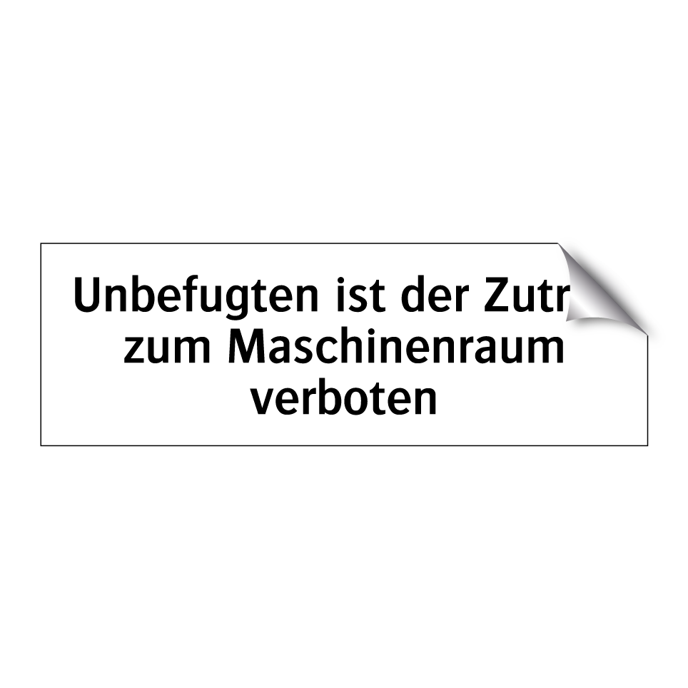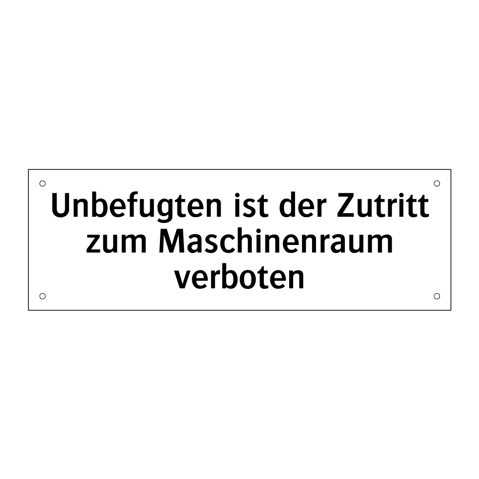Verbotsschild mit dem Text Unbefugten ist der Zutritt zum Maschinenraum verboten