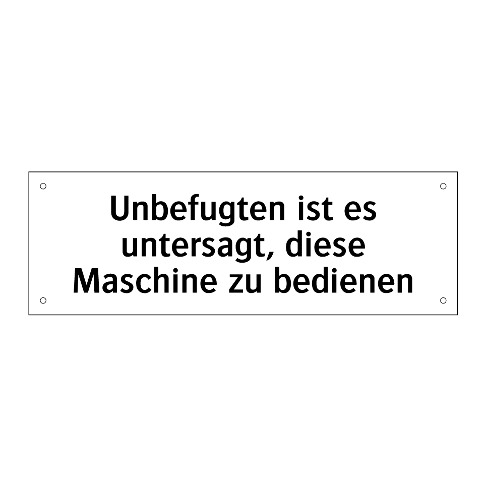 Verbotsschild mit dem Text Unbefugten ist es untersagt, diese Maschine zu bedienen