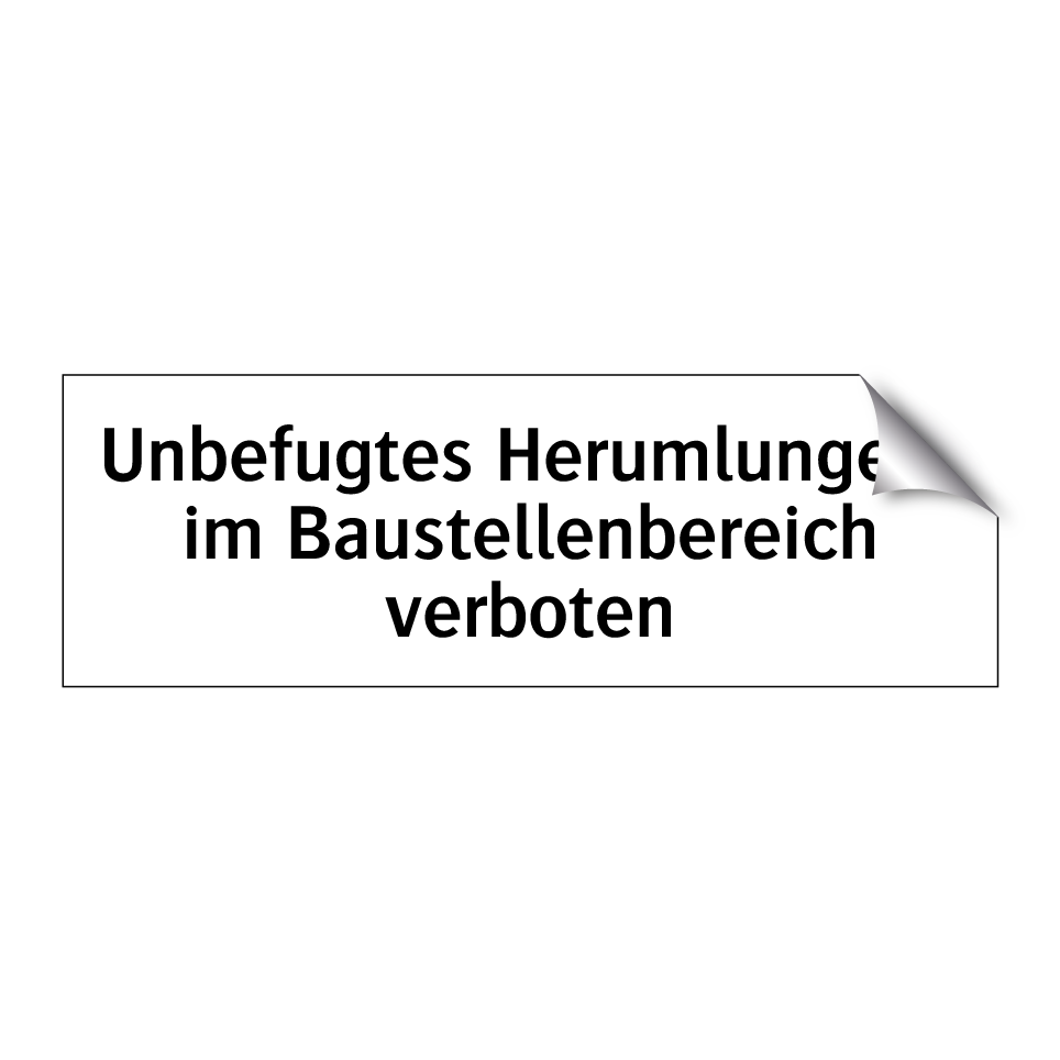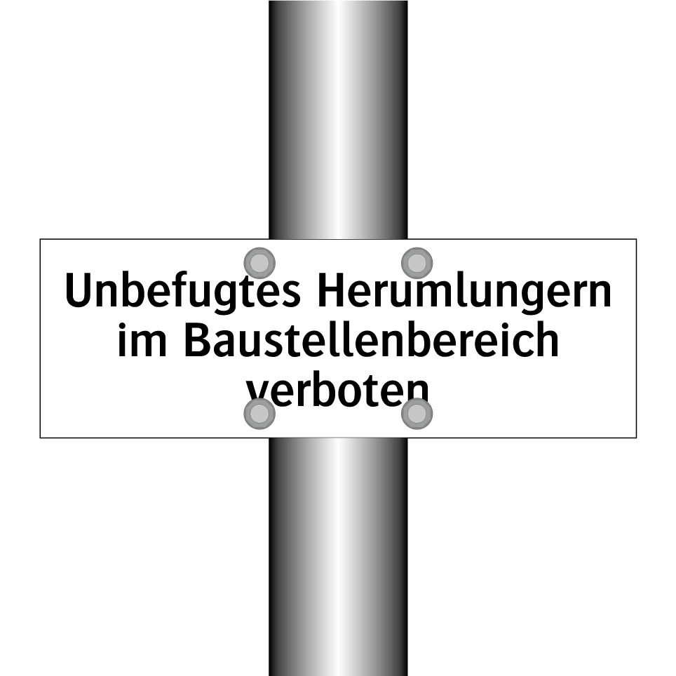 Verbotsschild mit dem Text Unbefugtes Herumlungern im Baustellenbereich verboten