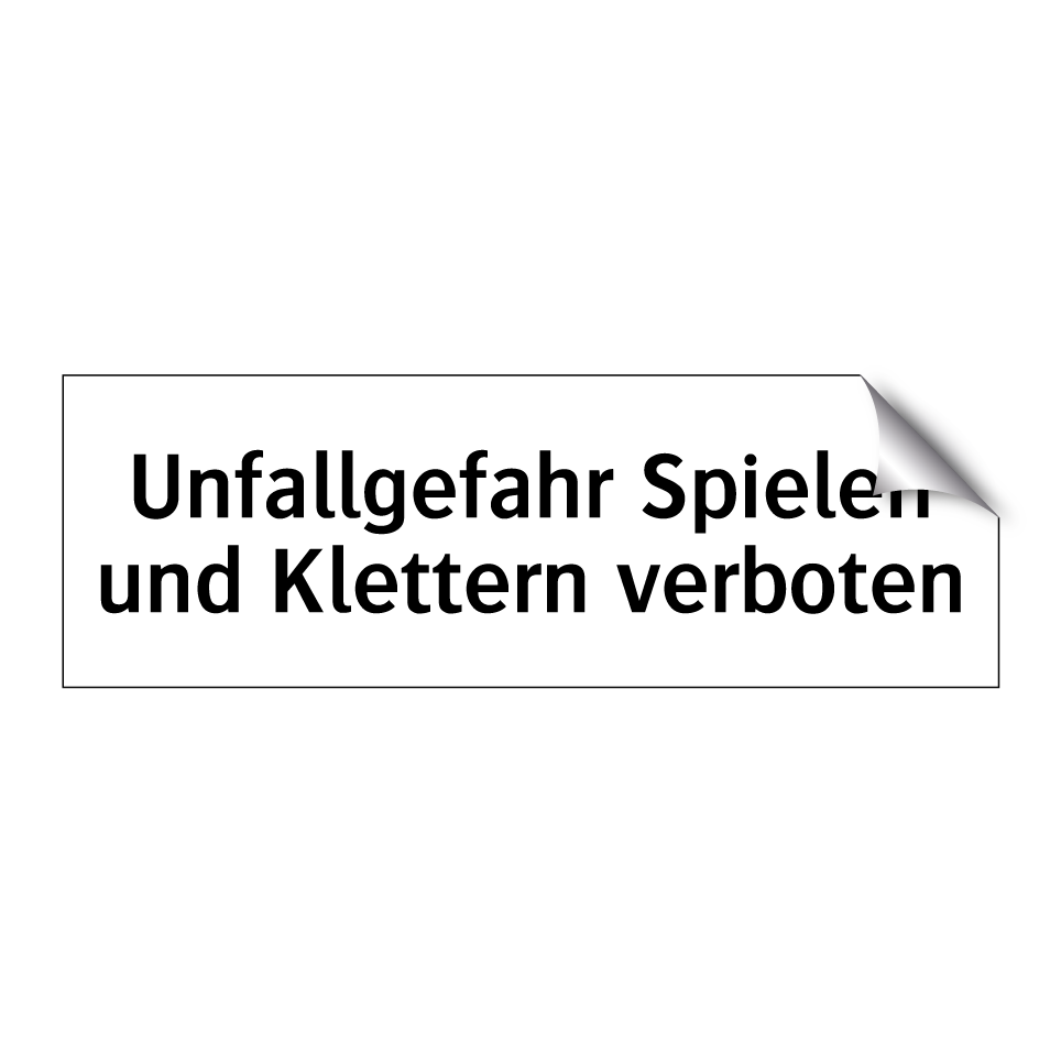 Verbotsschild mit dem Text Unfallgefahr Spielen und Klettern verboten