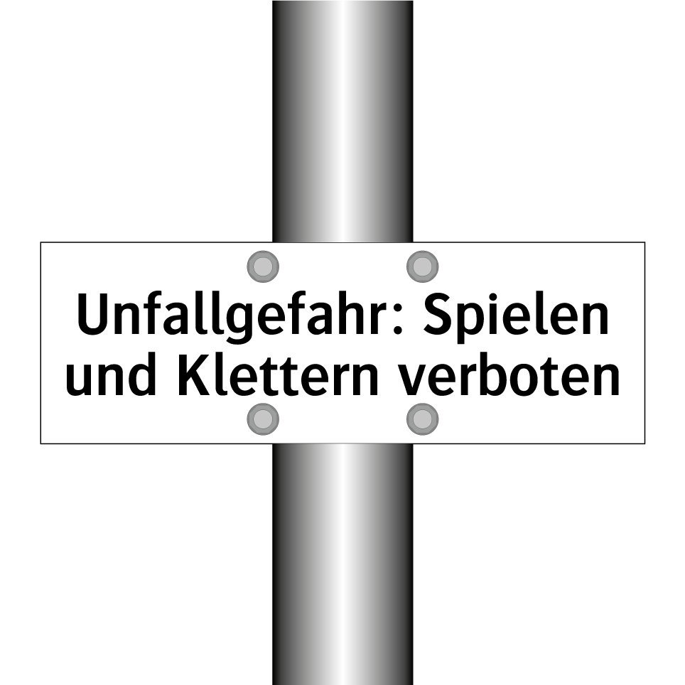 Verbotsschild mit dem Text Unfallgefahr: Spielen und Klettern verboten