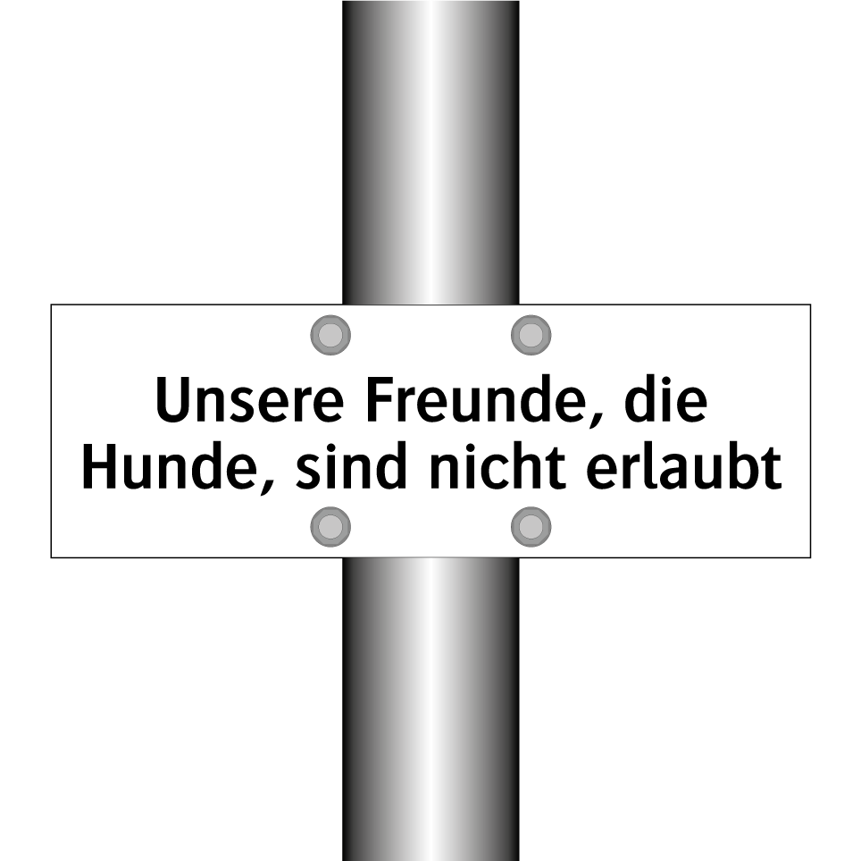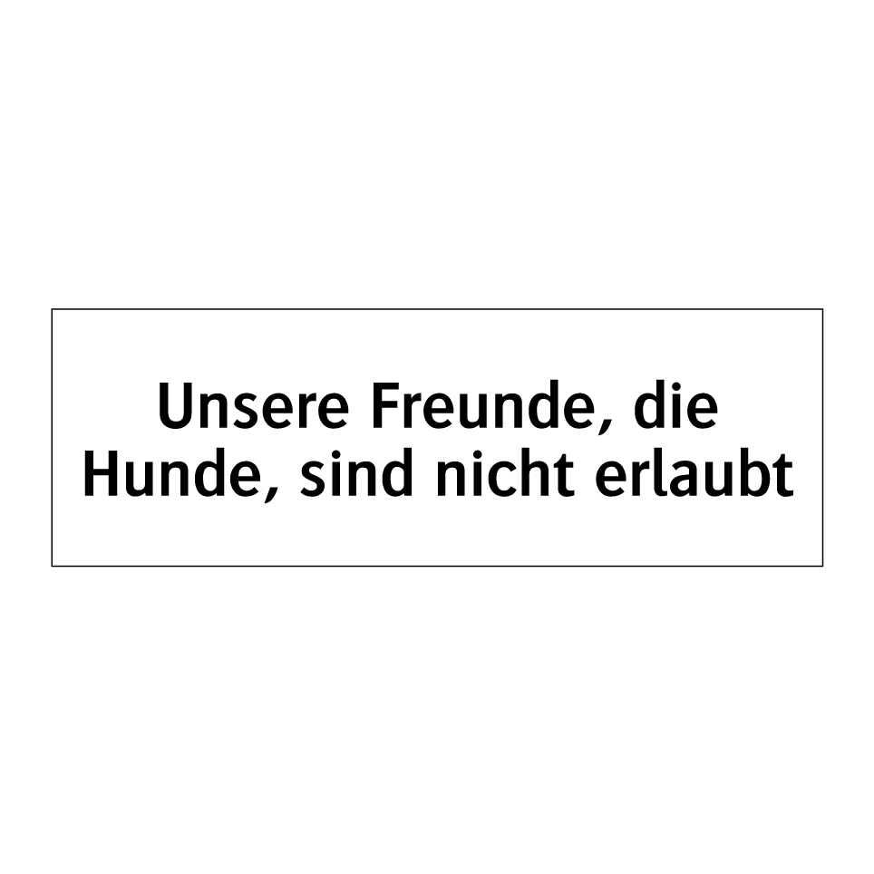 Verbotsschild mit dem Text Unsere Freunde, die Hunde, sind nicht erlaubt