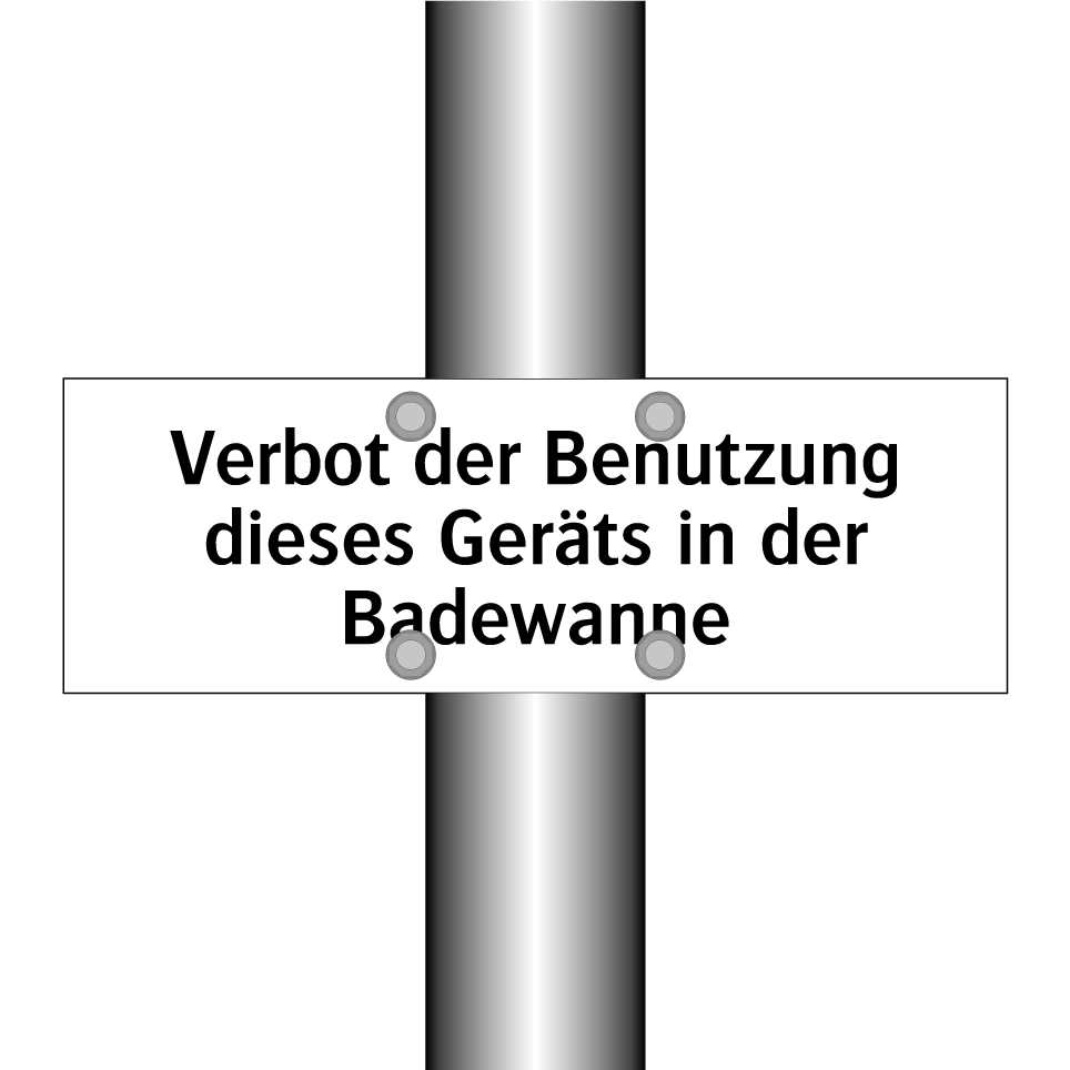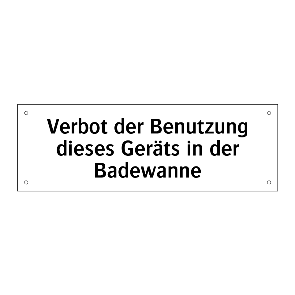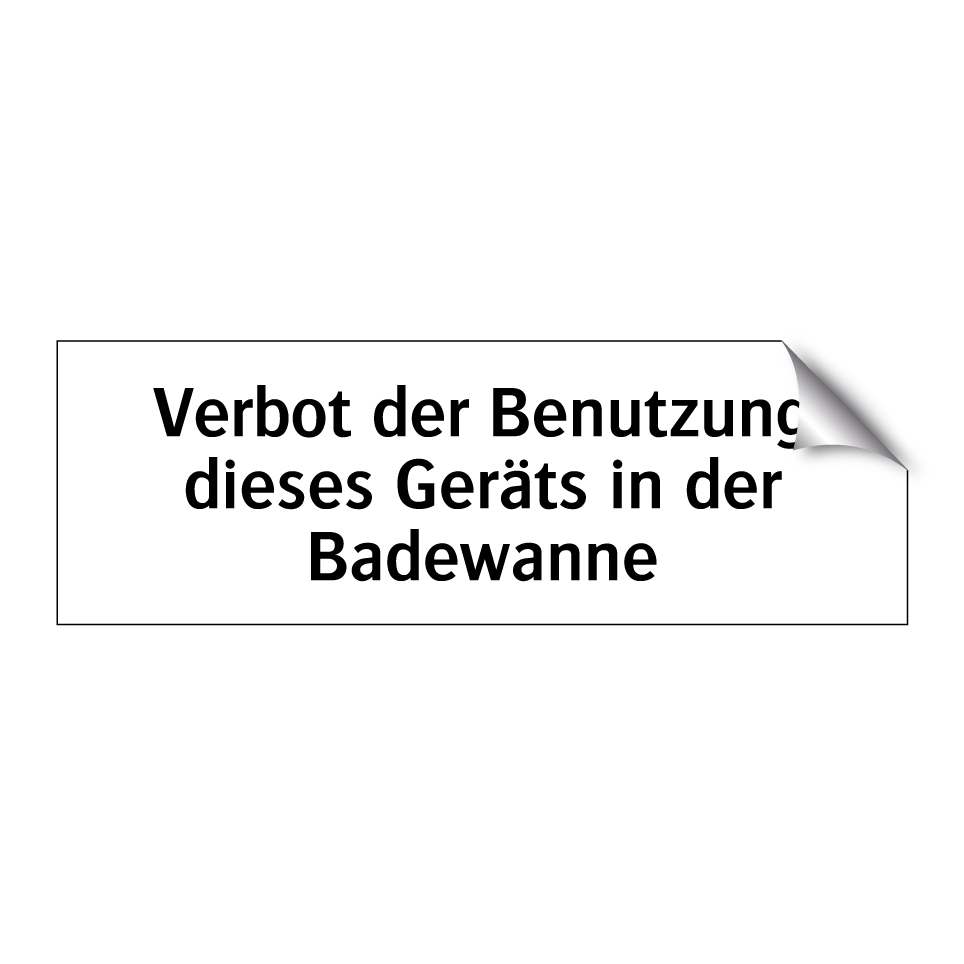 Verbotsschild mit dem Text Verbot der Benutzung dieses Geräts in der Badewanne