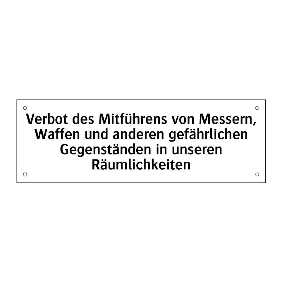 Verbotsschild mit dem Text Verbot des Mitführens von Messern, Waffen und anderen gefährlichen Gegenständen in unseren Räumlichkeiten