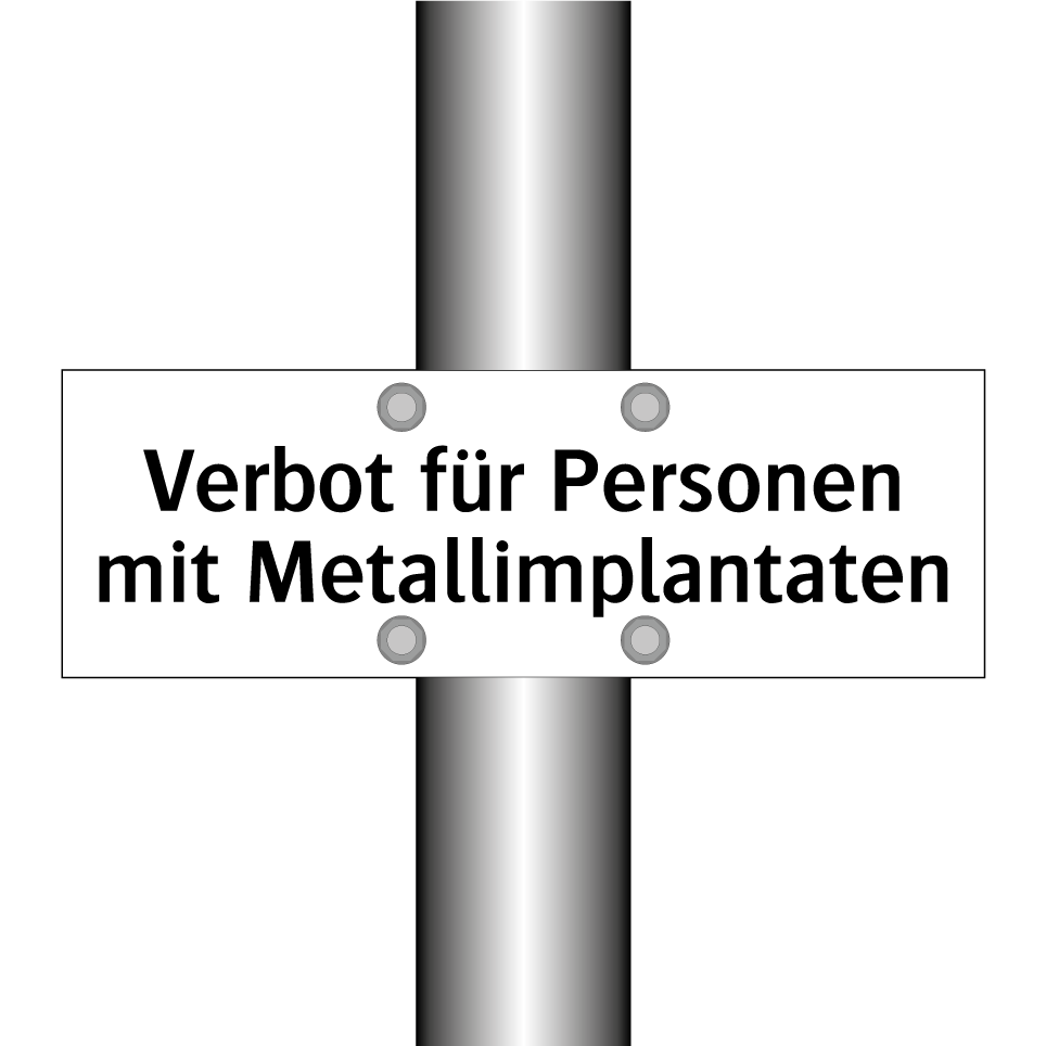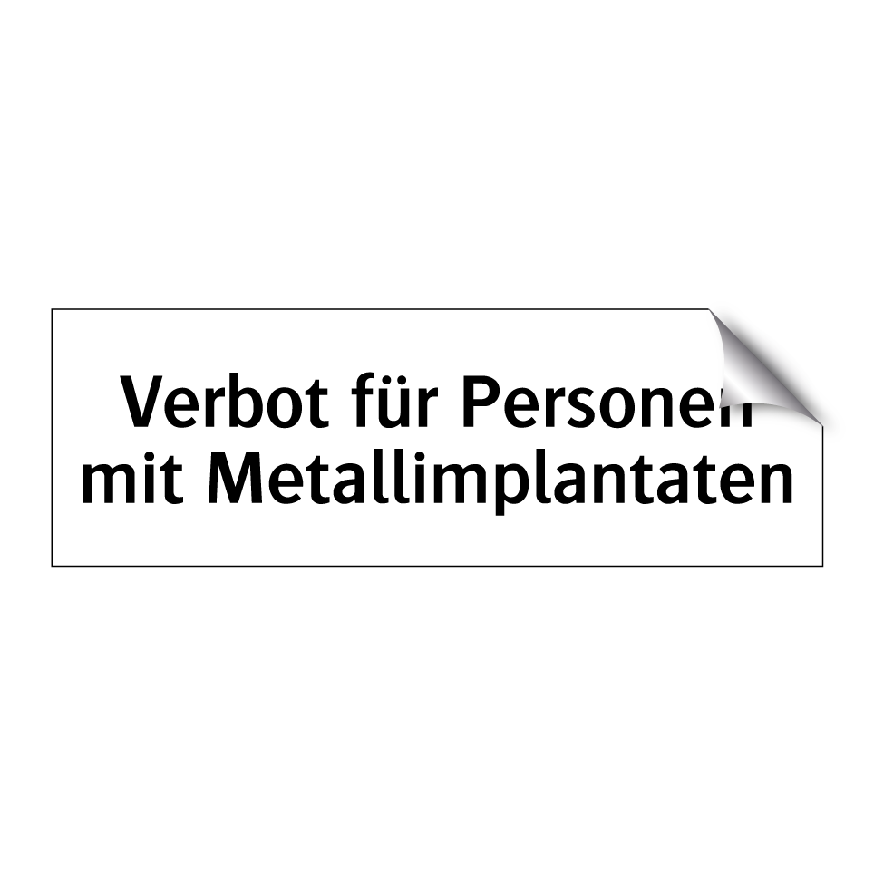 Verbotsschild mit dem Text Verbot für Personen mit Metallimplantaten