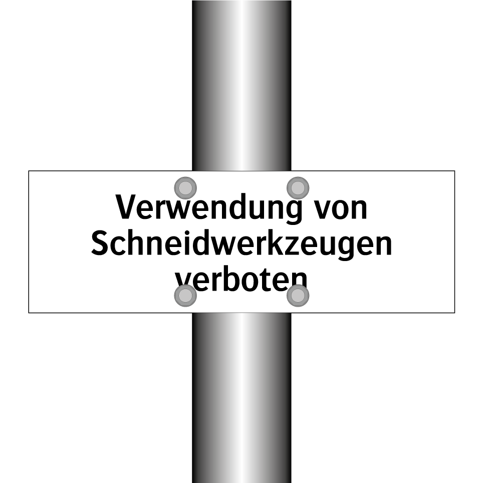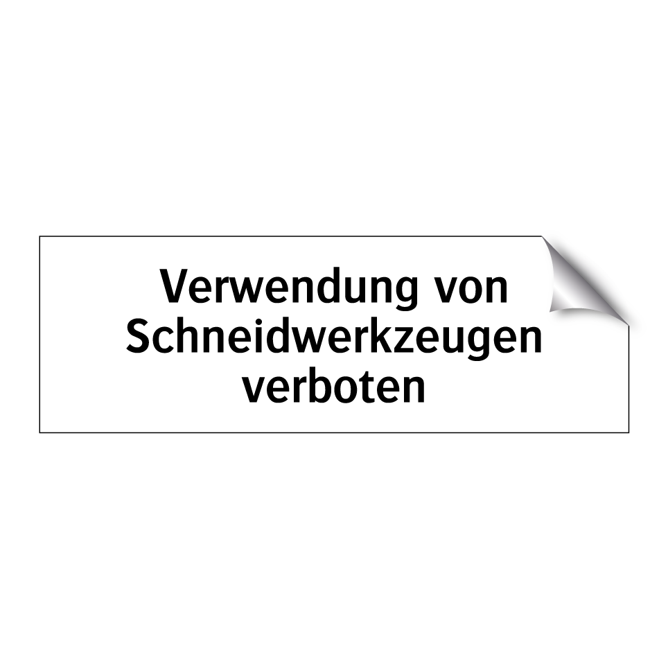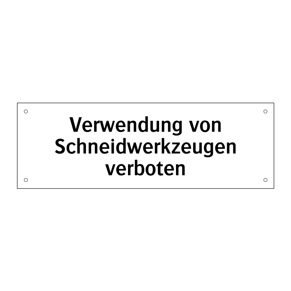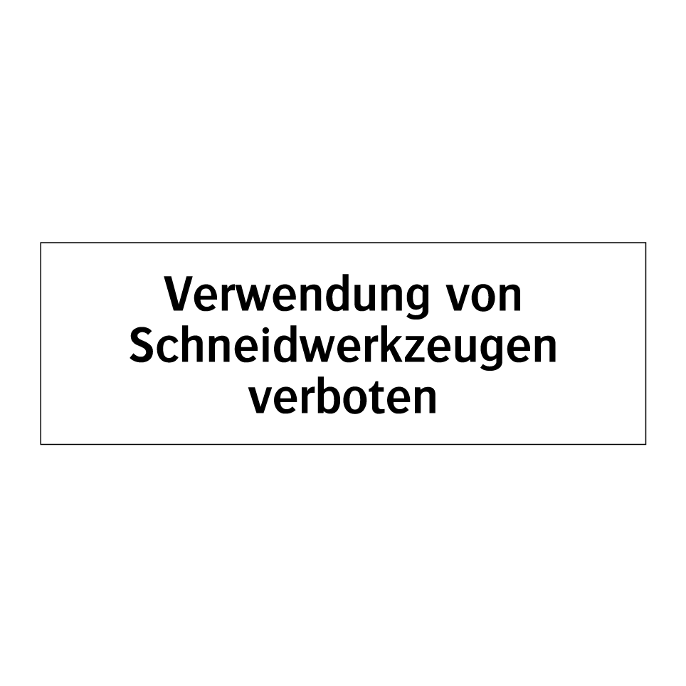 Verbotsschild mit dem Text Verwendung von Schneidwerkzeugen verboten