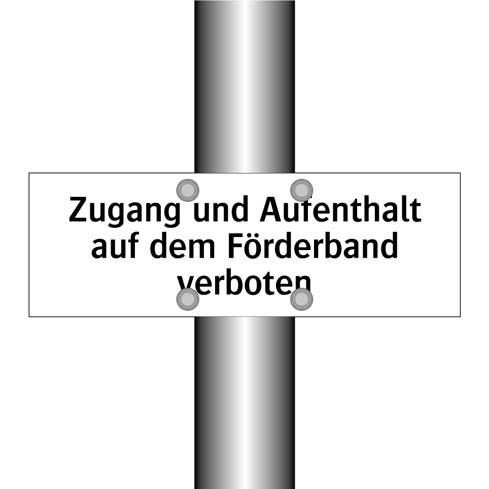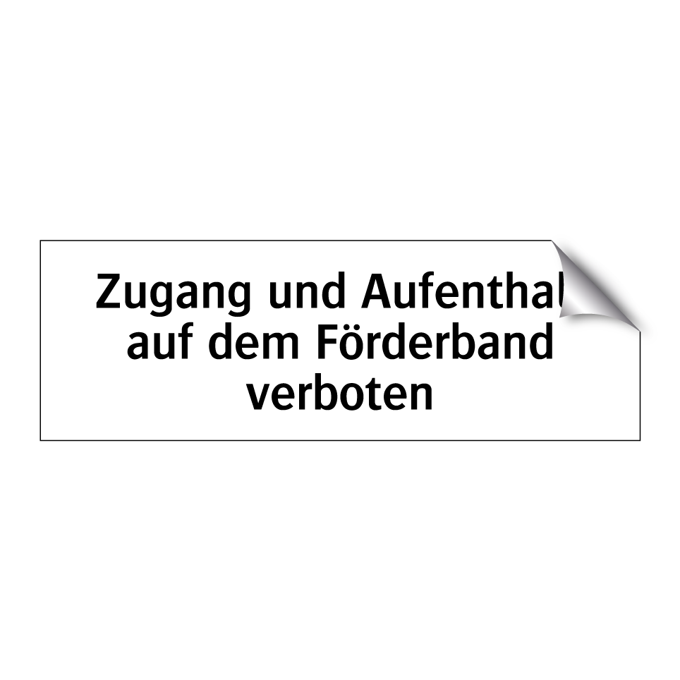 Verbotsschild mit dem Text Zugang und Aufenthalt auf dem Förderband verboten