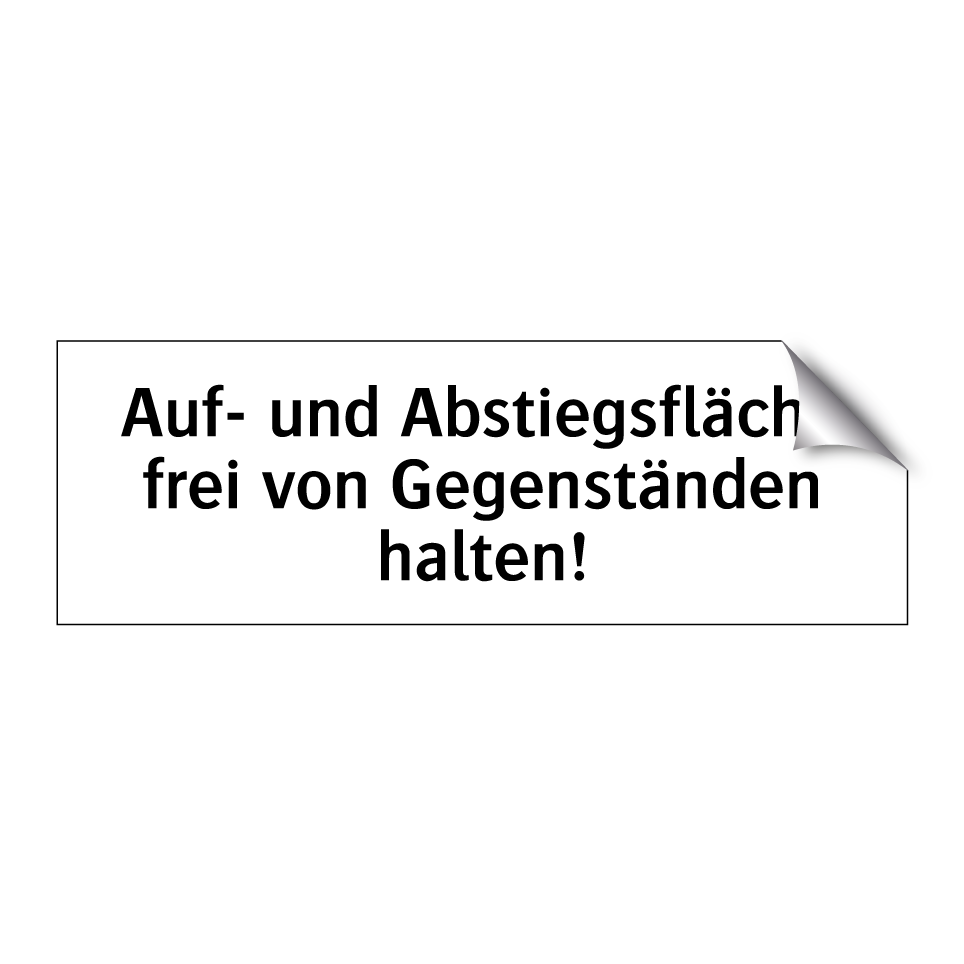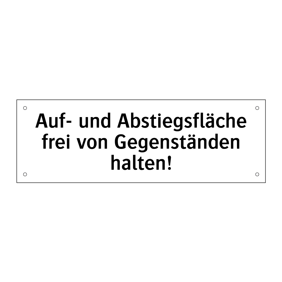 Verbotsschild mit dem Text Auf- und Abstiegsfläche frei von Gegenständen halten!