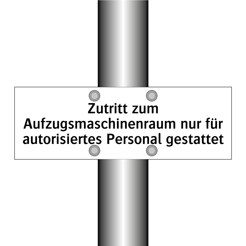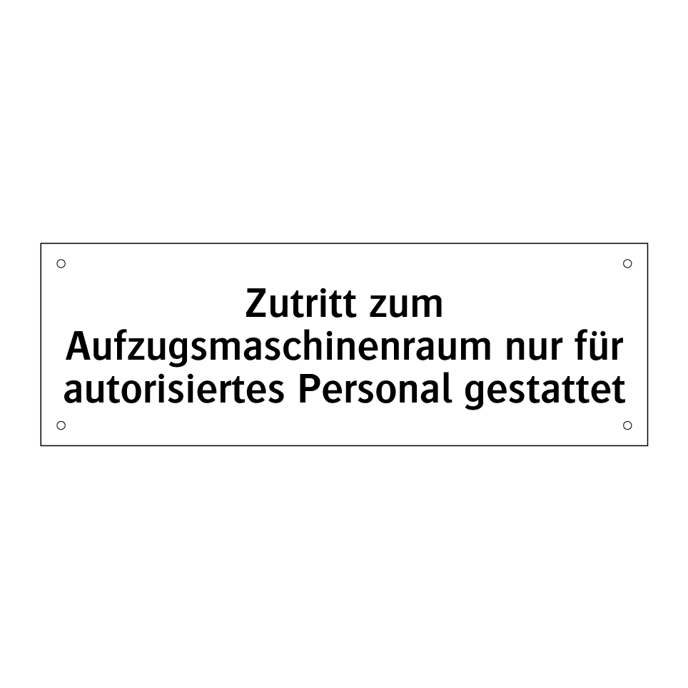 Verbotsschild mit dem Text Zutritt zum Aufzugsmaschinenraum nur für autorisiertes Personal gestattet