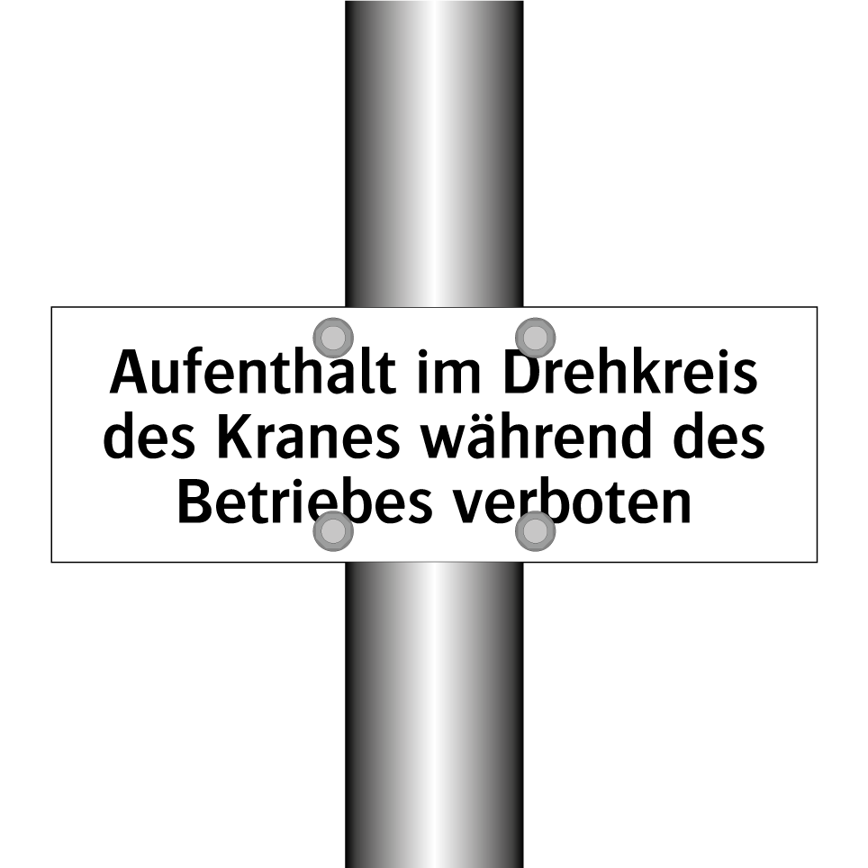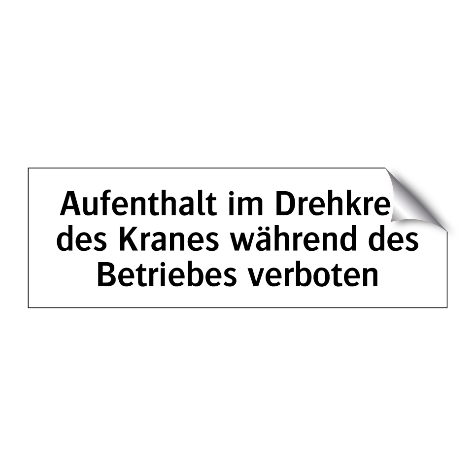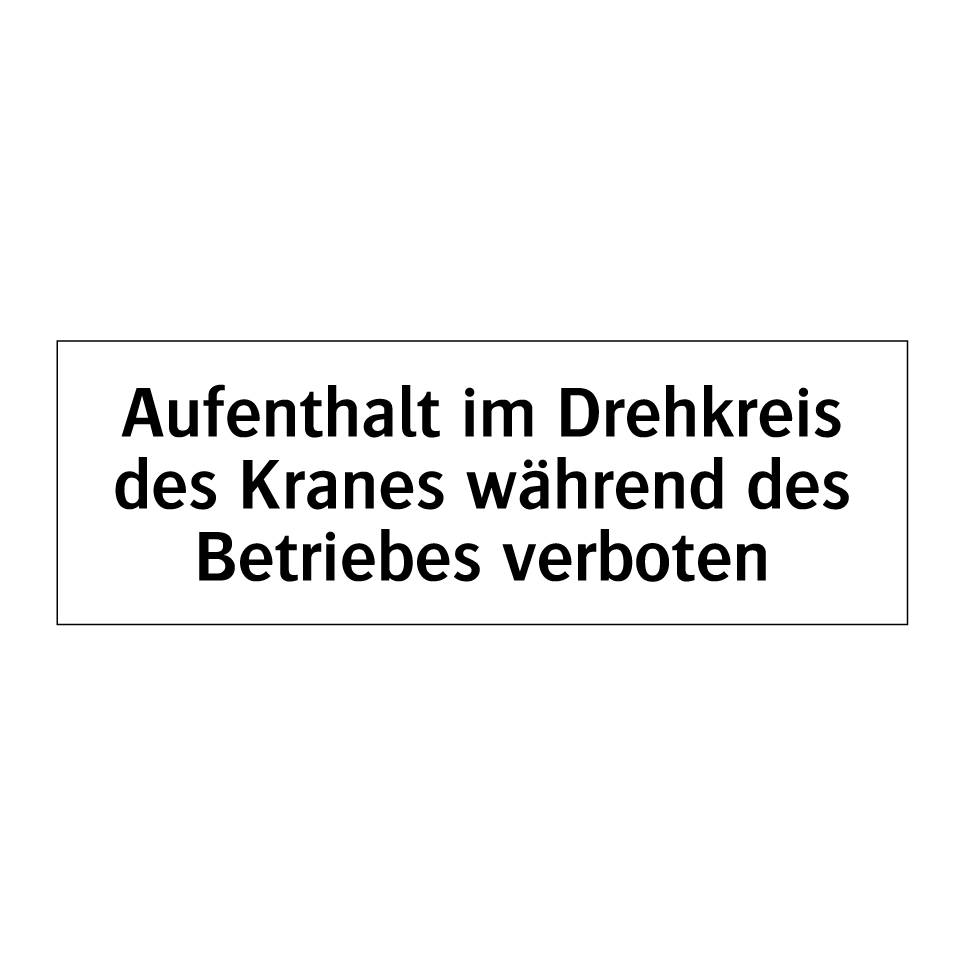 Verbotsschild mit dem Text Aufenthalt im Drehkreis des Kranes während des Betriebes verboten