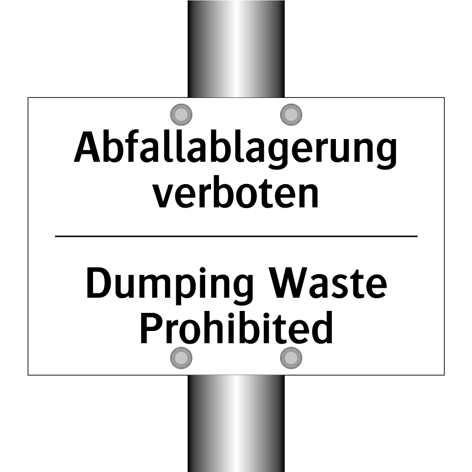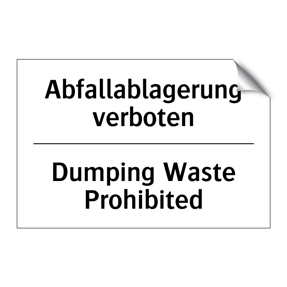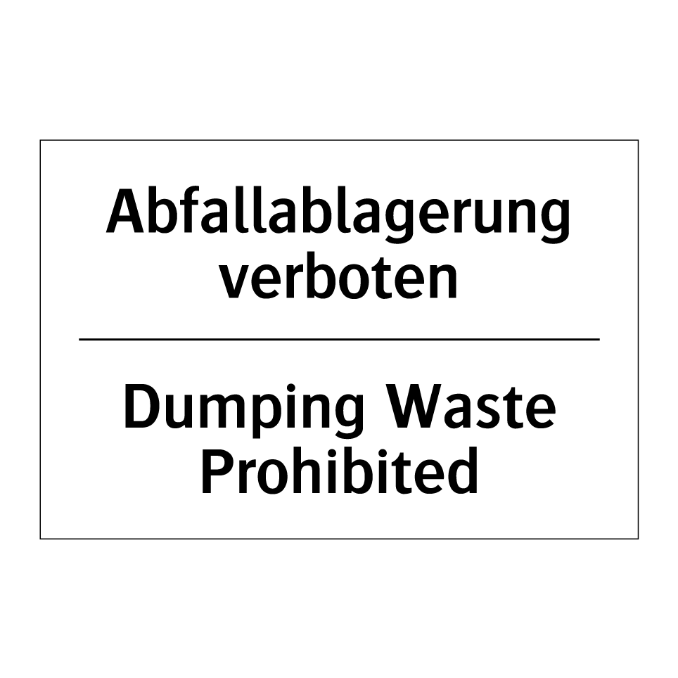 Zweisprachiges Verbotsschild mit deutschem Text Abfallablagerung verboten und englischem Text Dumping Waste Prohibited