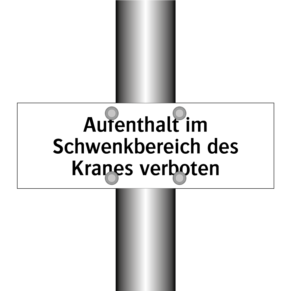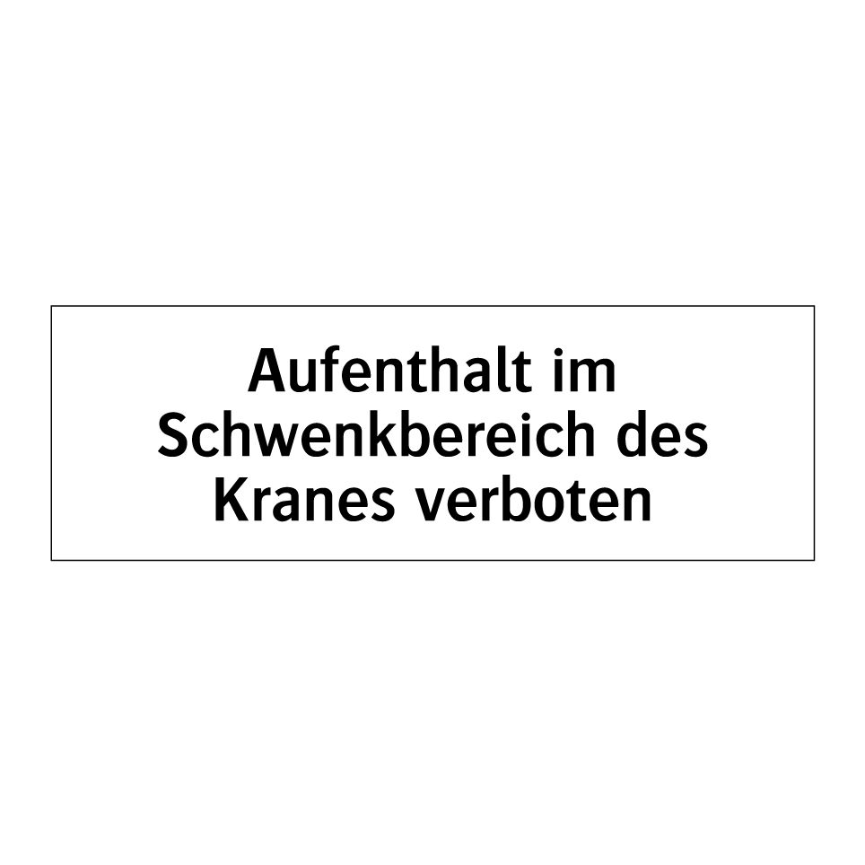 Verbotsschild mit dem Text Aufenthalt im Schwenkbereich des Kranes verboten