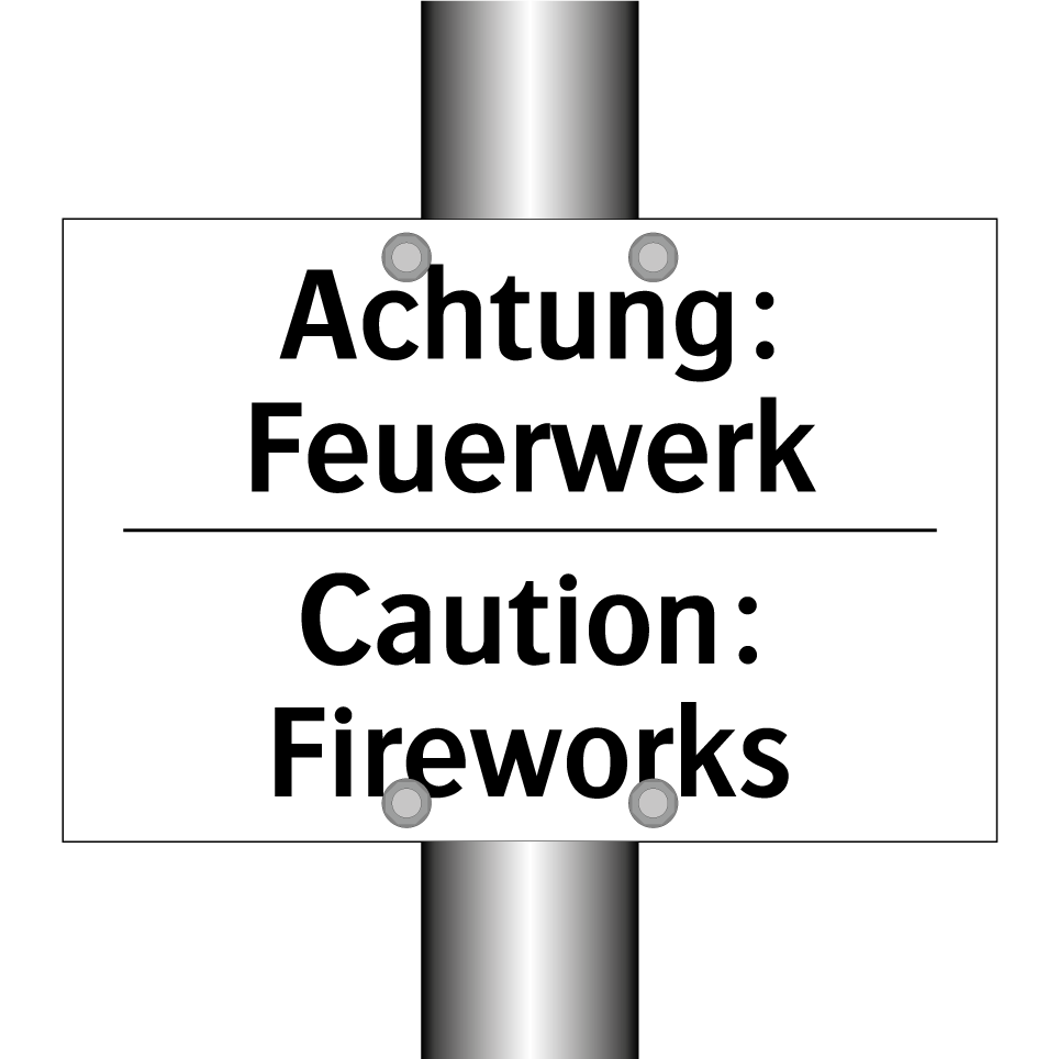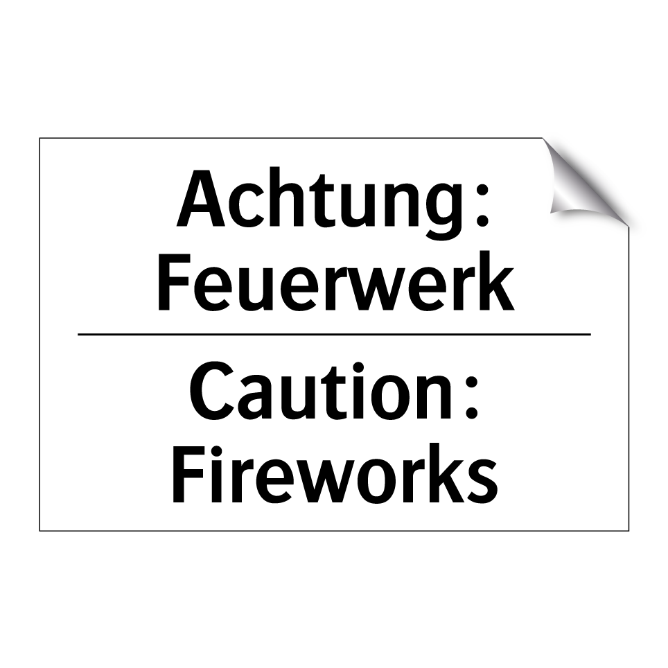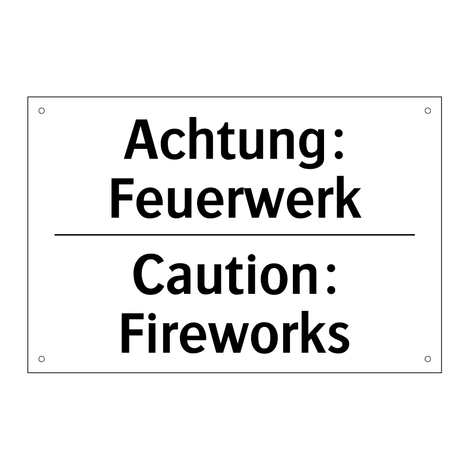 Zweisprachiges Verbotsschild mit deutschem Text Achtung: Feuerwerk und englischem Text Caution: Fireworks