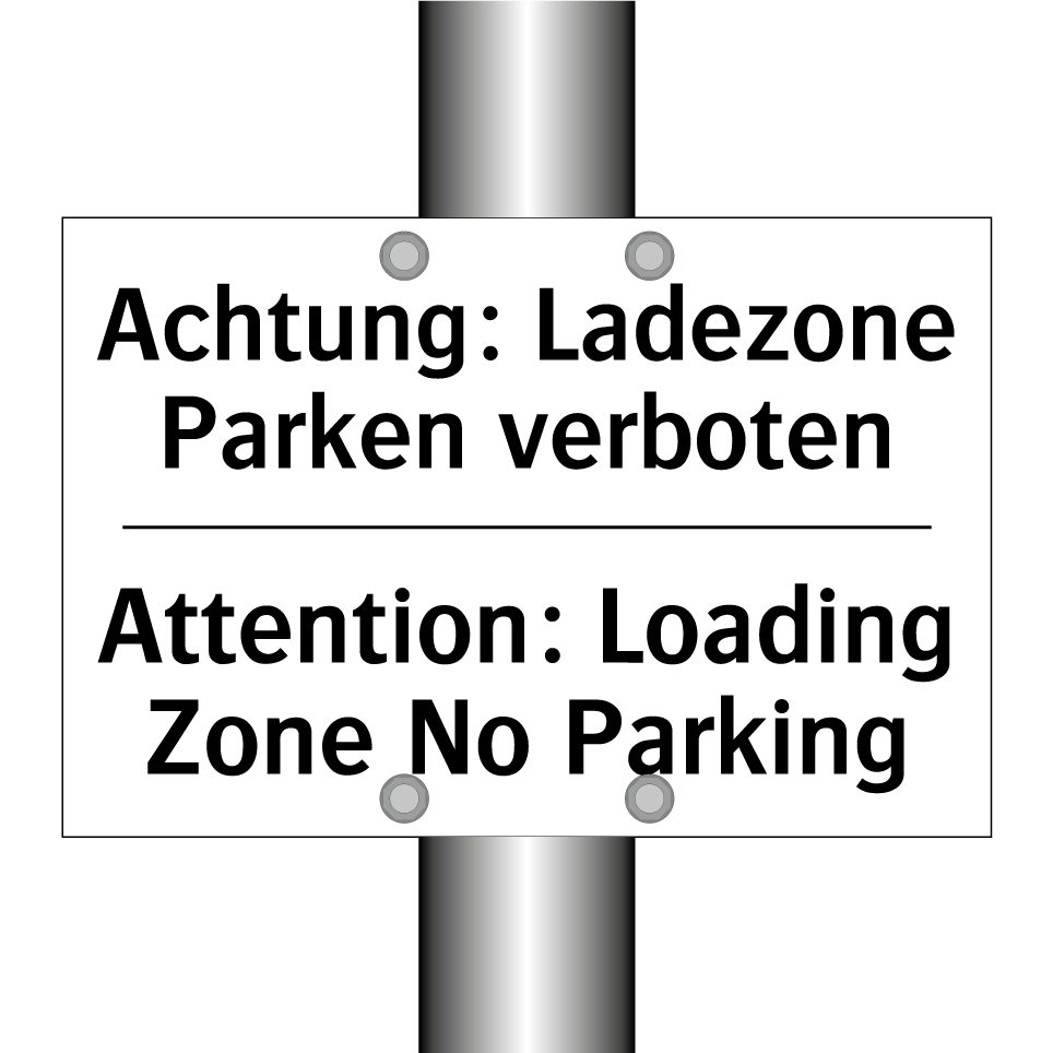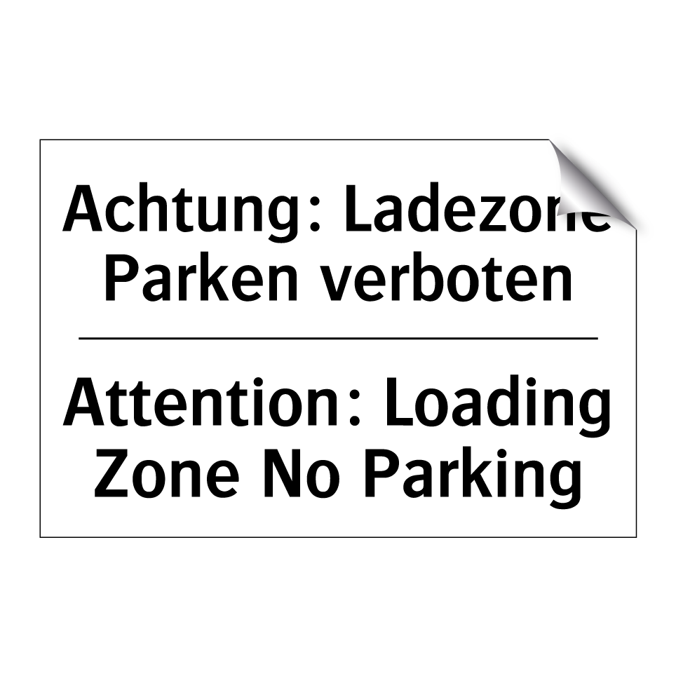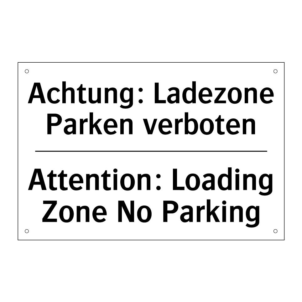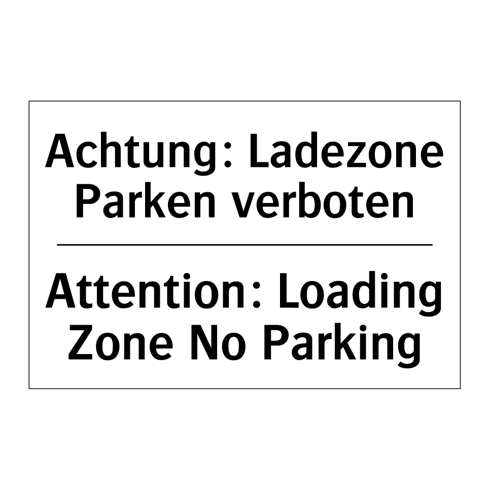 Zweisprachiges Verbotsschild mit deutschem Text Achtung: Ladezone Parken verboten und englischem Text Attention: Loading Zone No Parking