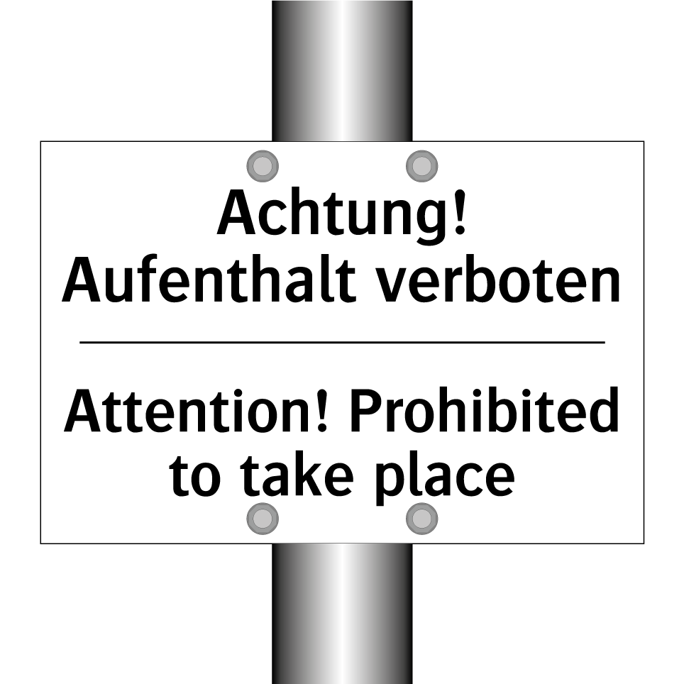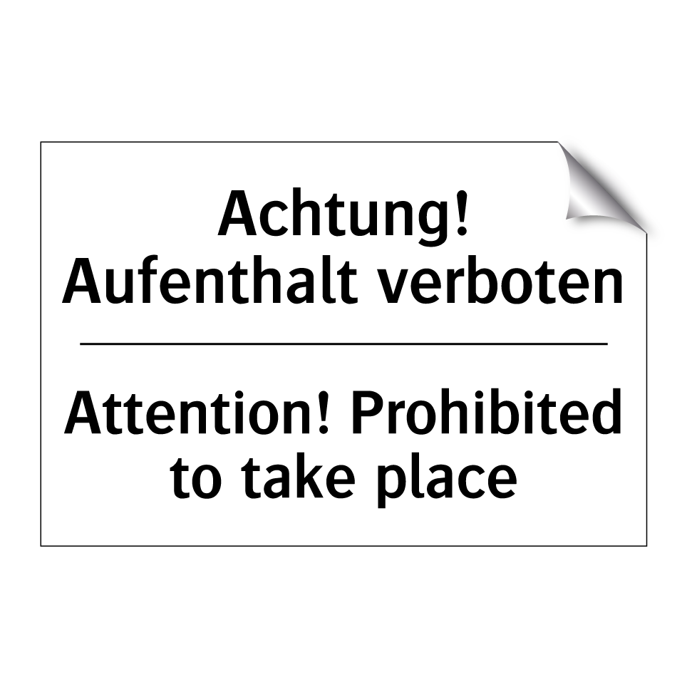 Zweisprachiges Verbotsschild mit deutschem Text Achtung! Aufenthalt verboten und englischem Text Attention! Prohibited to take place