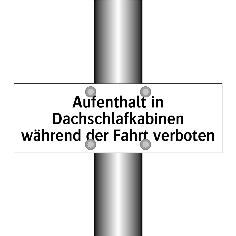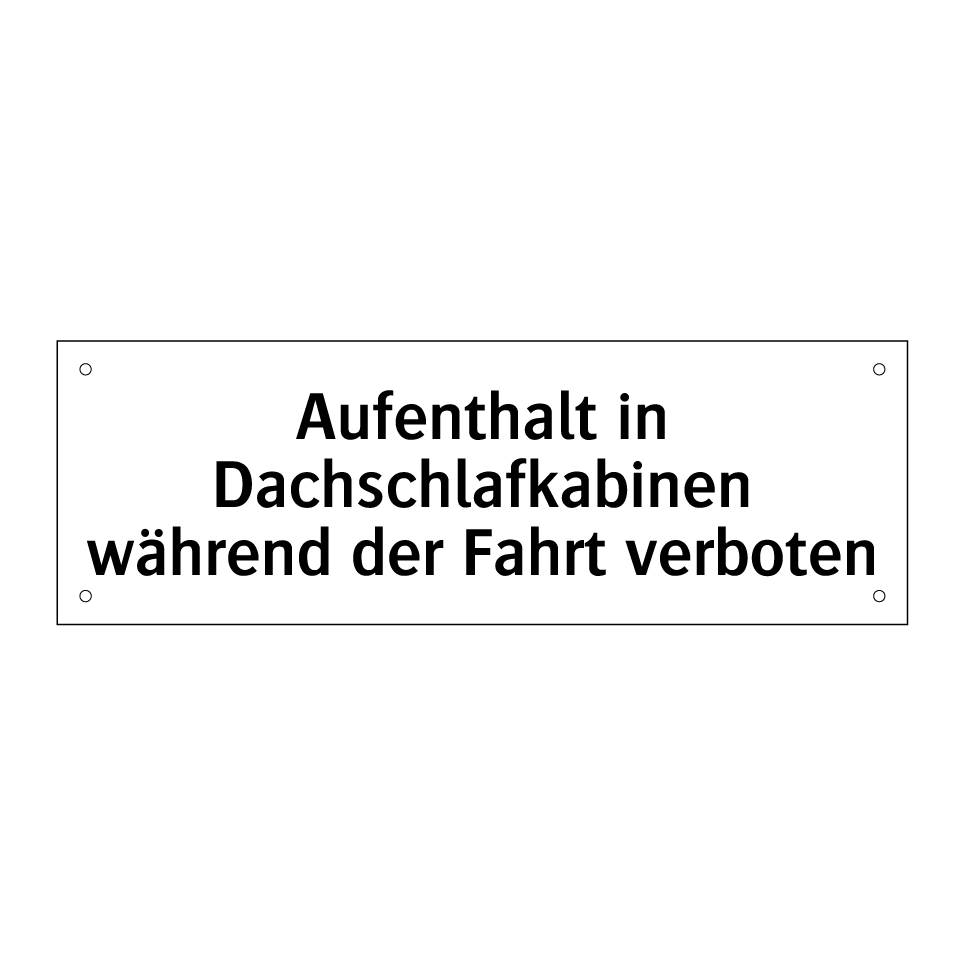 Verbotsschild mit dem Text Aufenthalt in Dachschlafkabinen während der Fahrt verboten