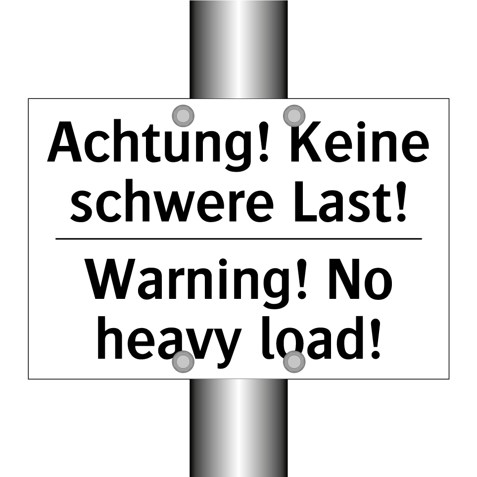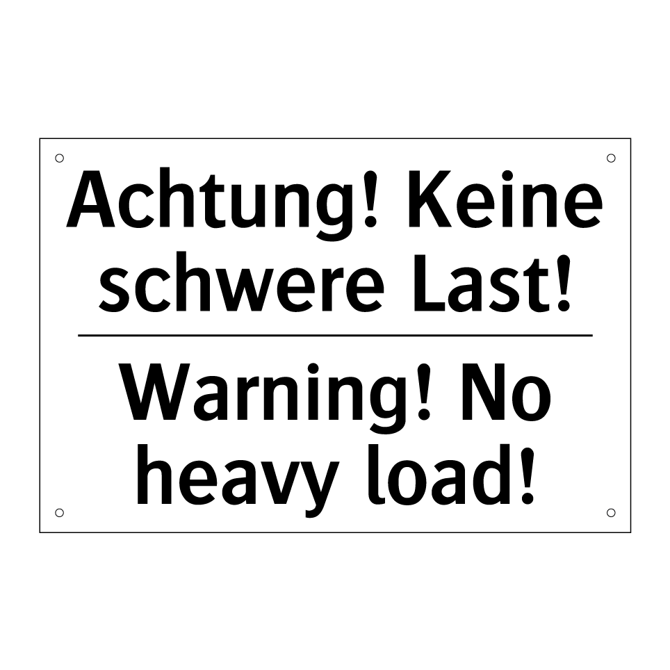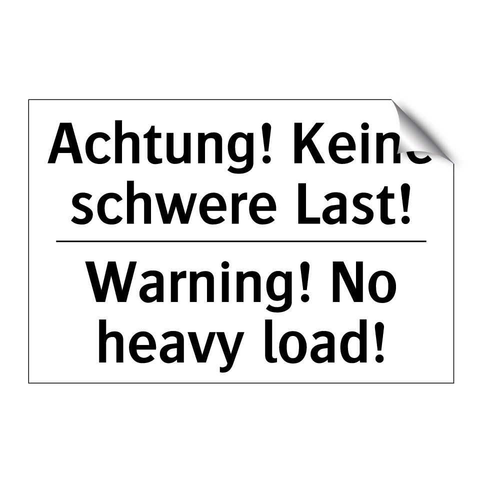 Zweisprachiges Verbotsschild mit deutschem Text Achtung! Keine schwere Last! und englischem Text Warning! No heavy load!
