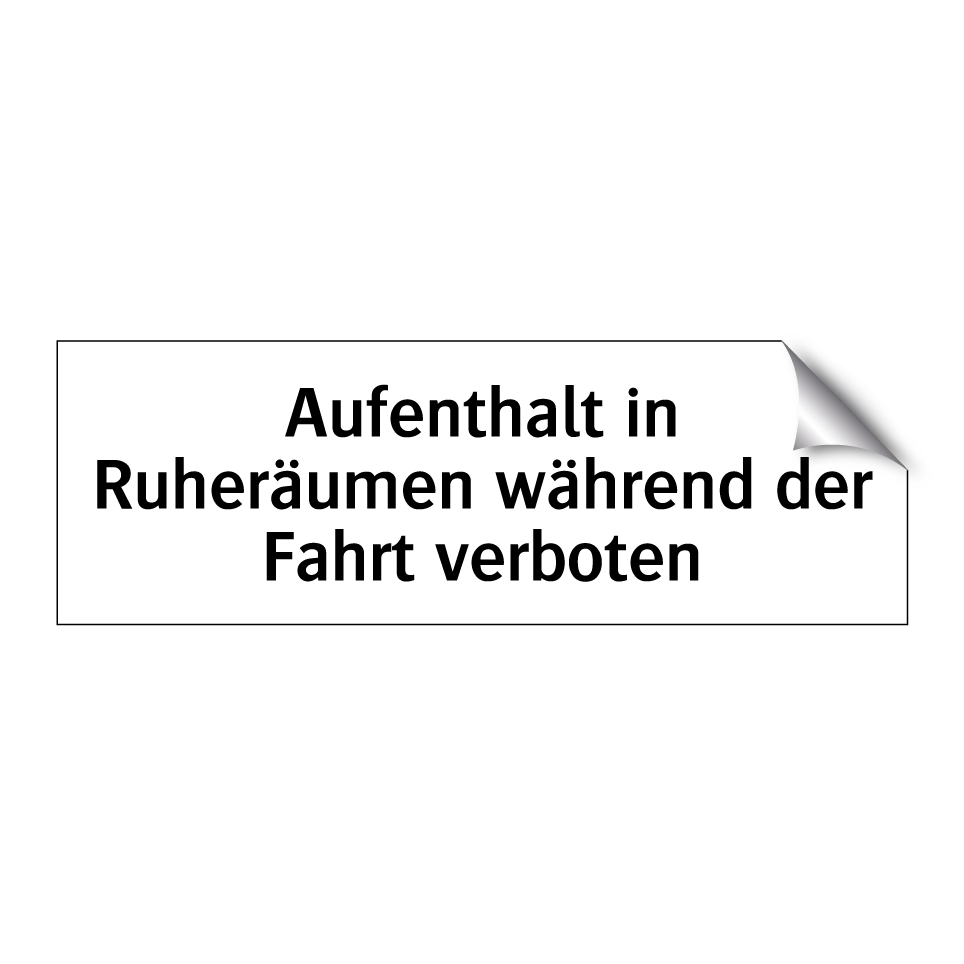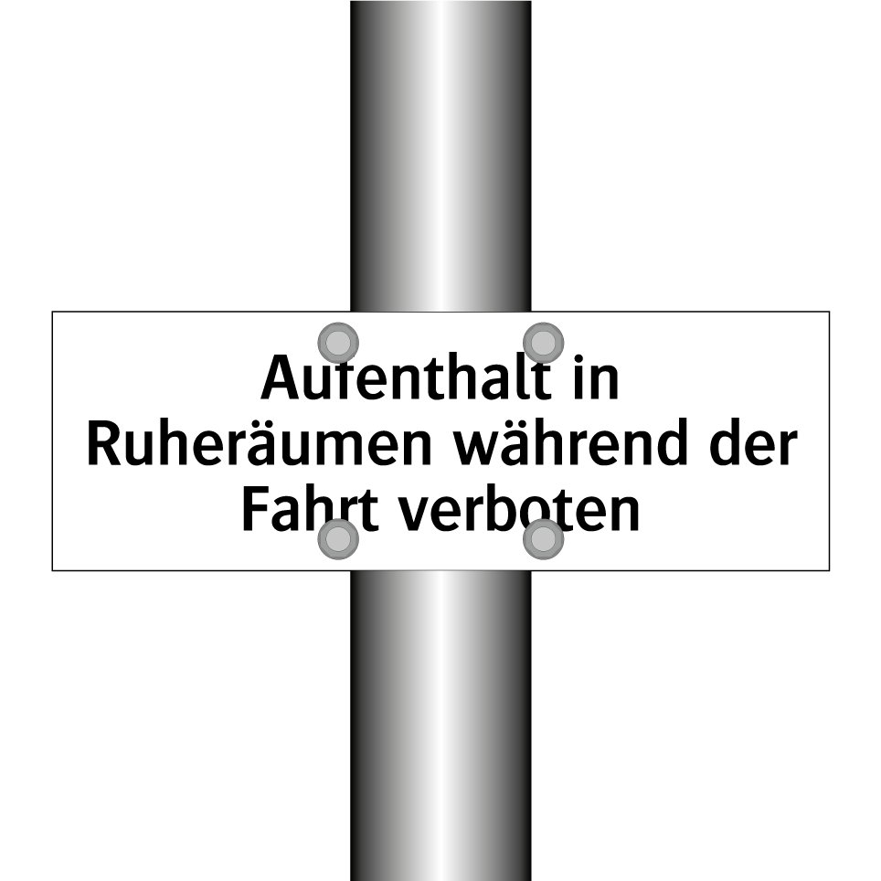 Verbotsschild mit dem Text Aufenthalt in Ruheräumen während der Fahrt verboten