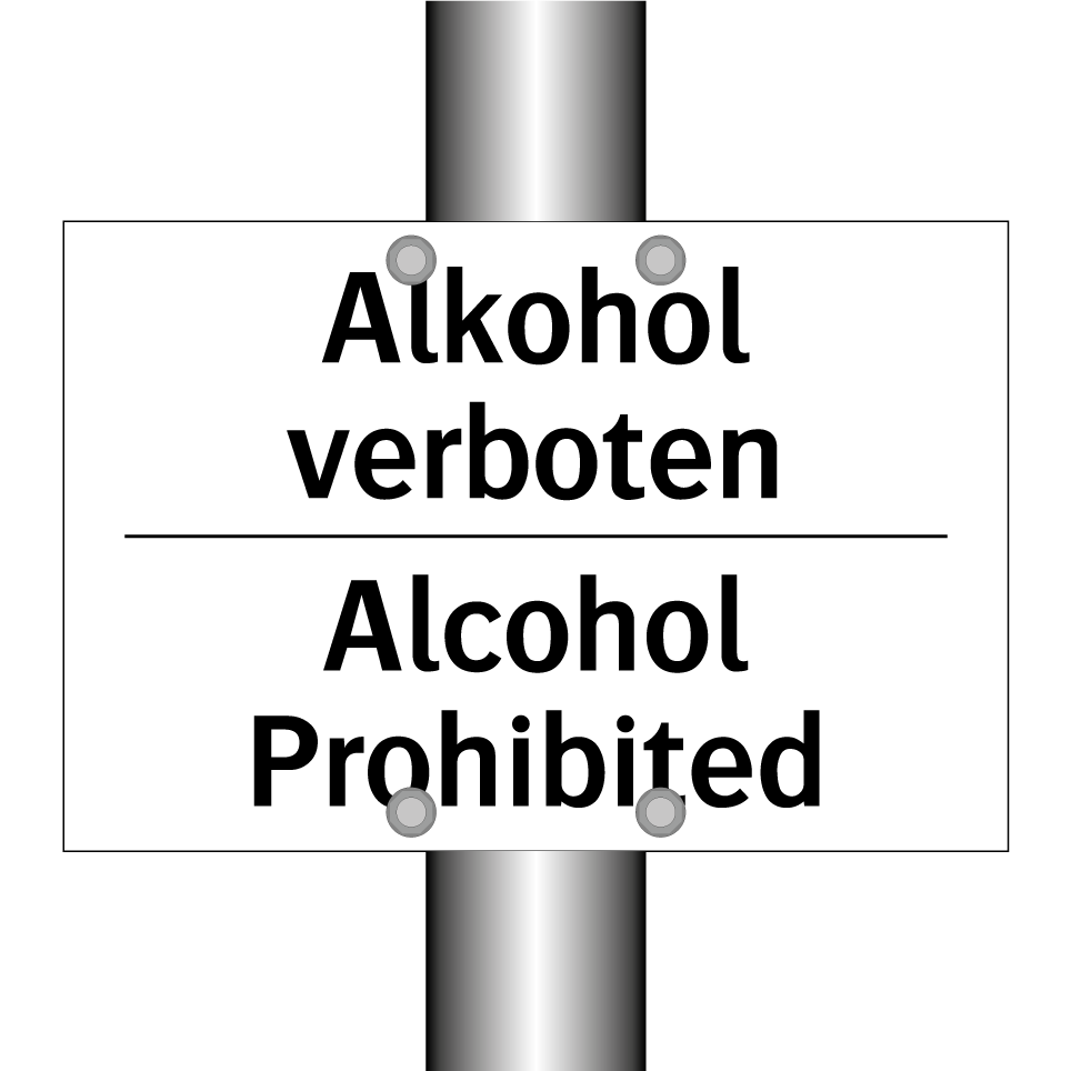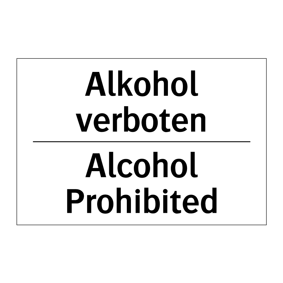 Zweisprachiges Verbotsschild mit deutschem Text Alkohol verboten und englischem Text Alcohol Prohibited