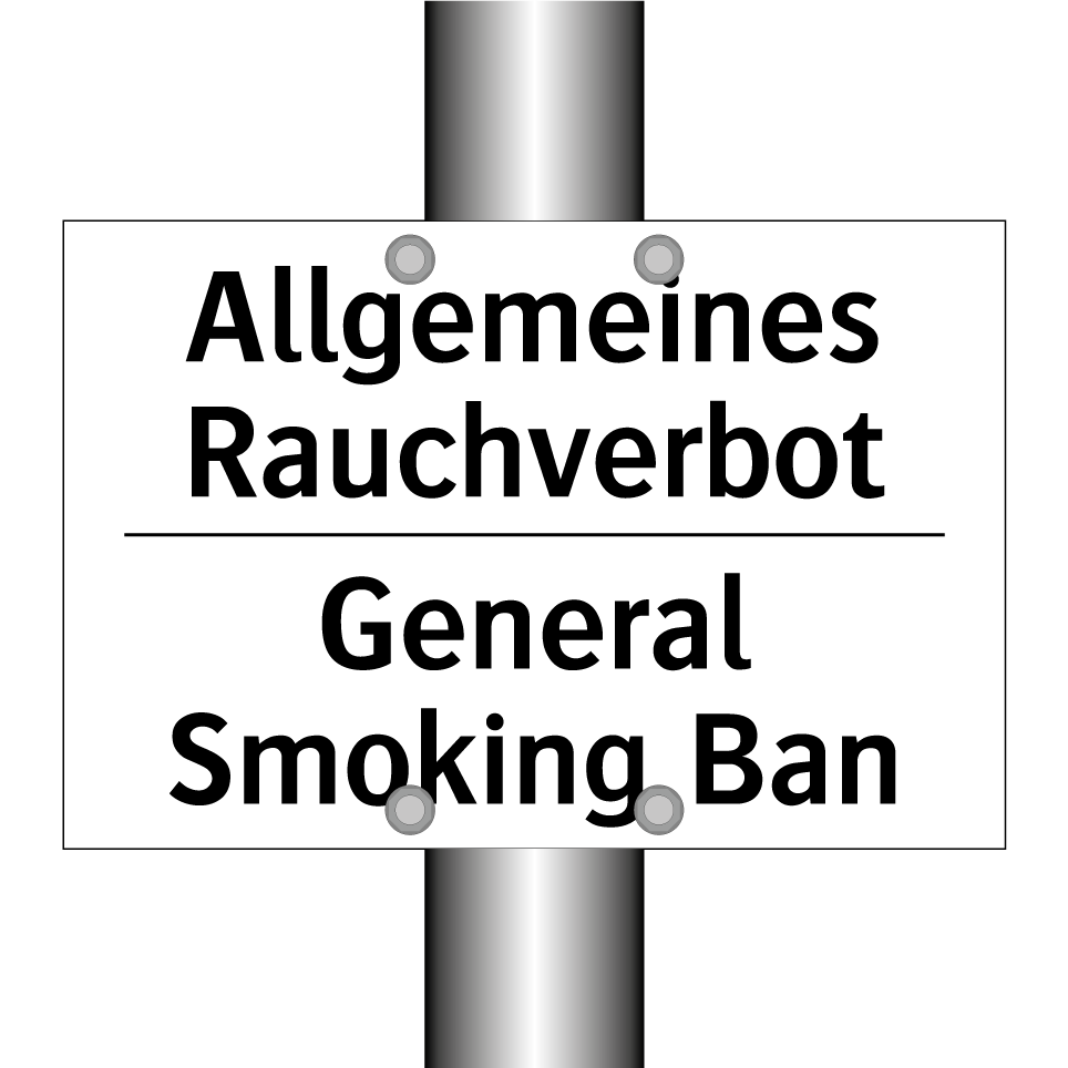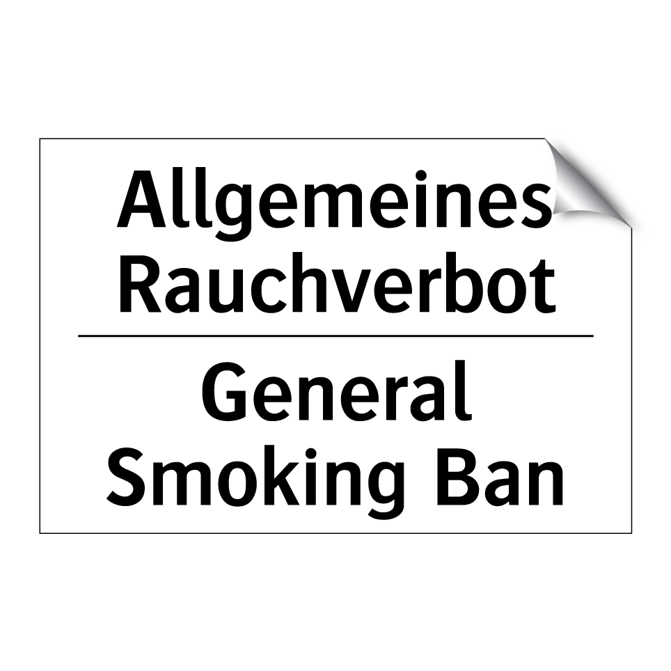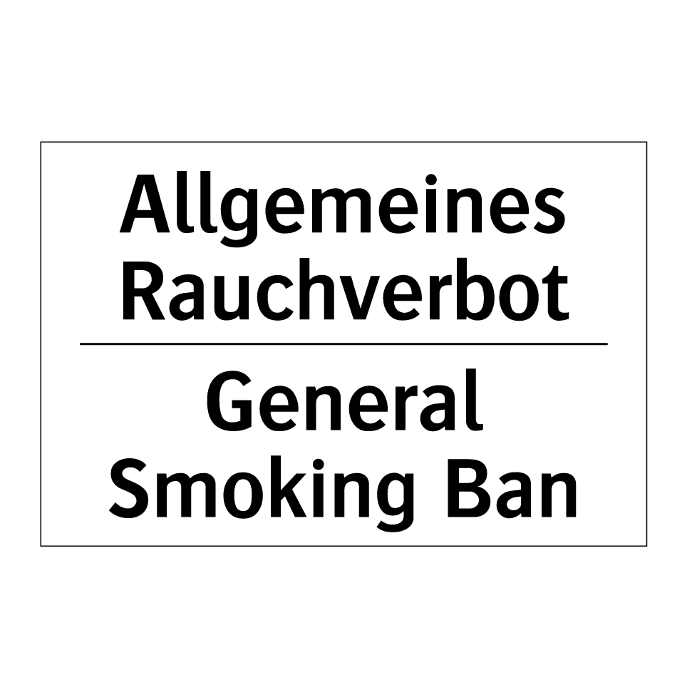 Zweisprachiges Verbotsschild mit deutschem Text Allgemeines Rauchverbot und englischem Text General Smoking Ban