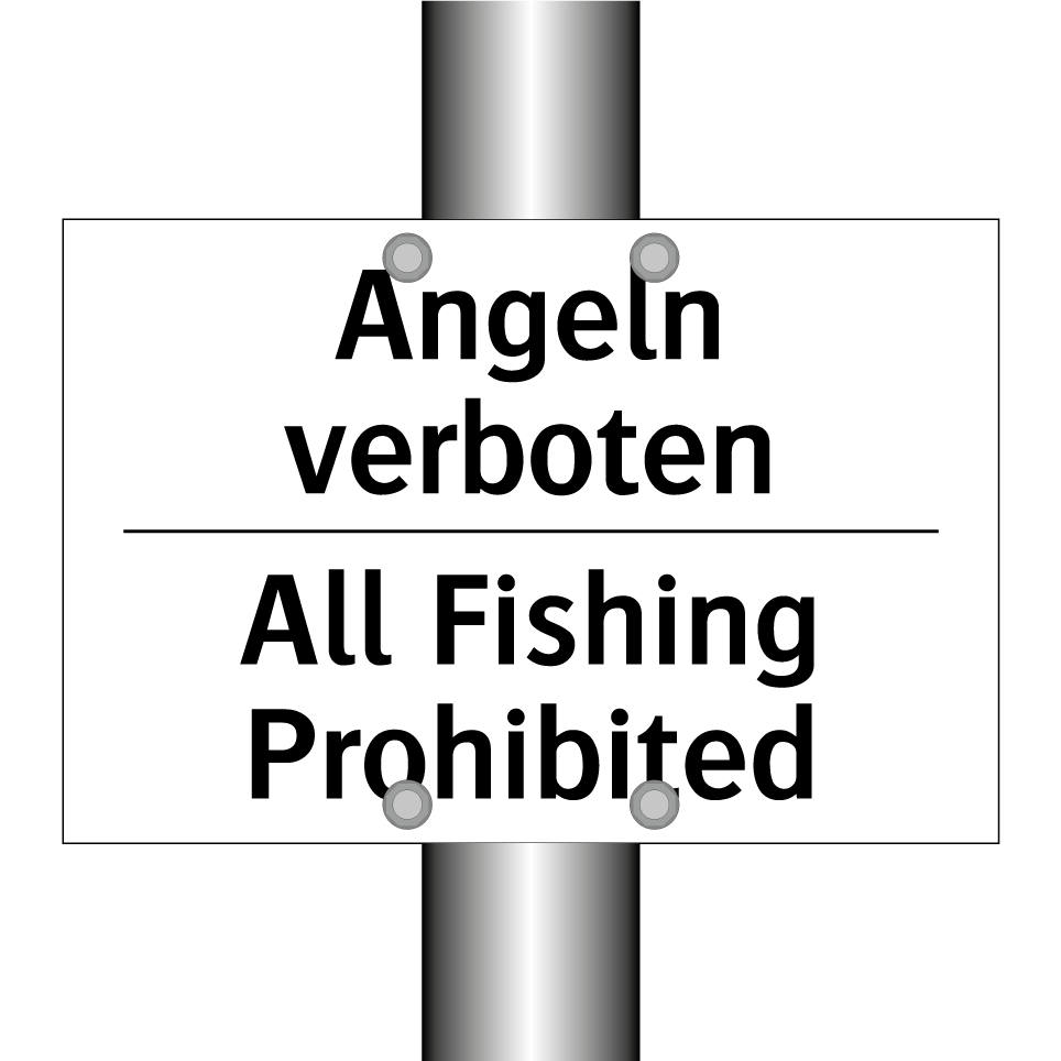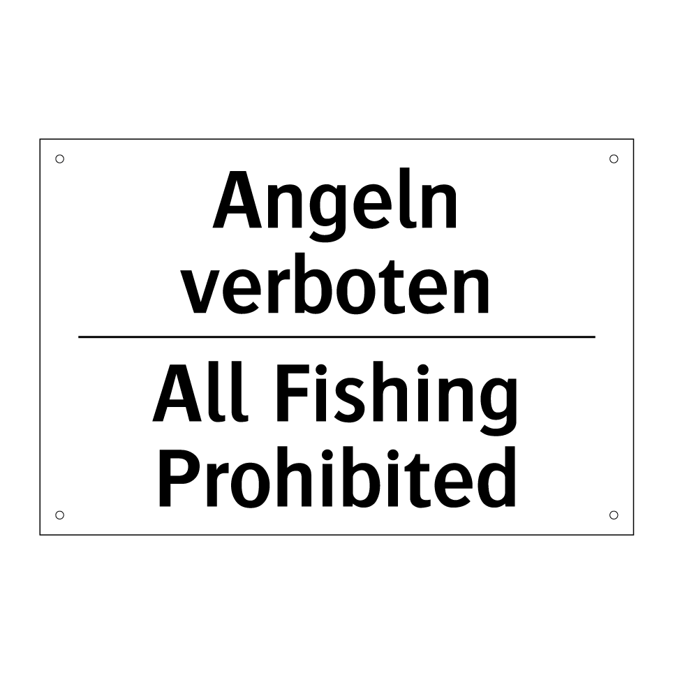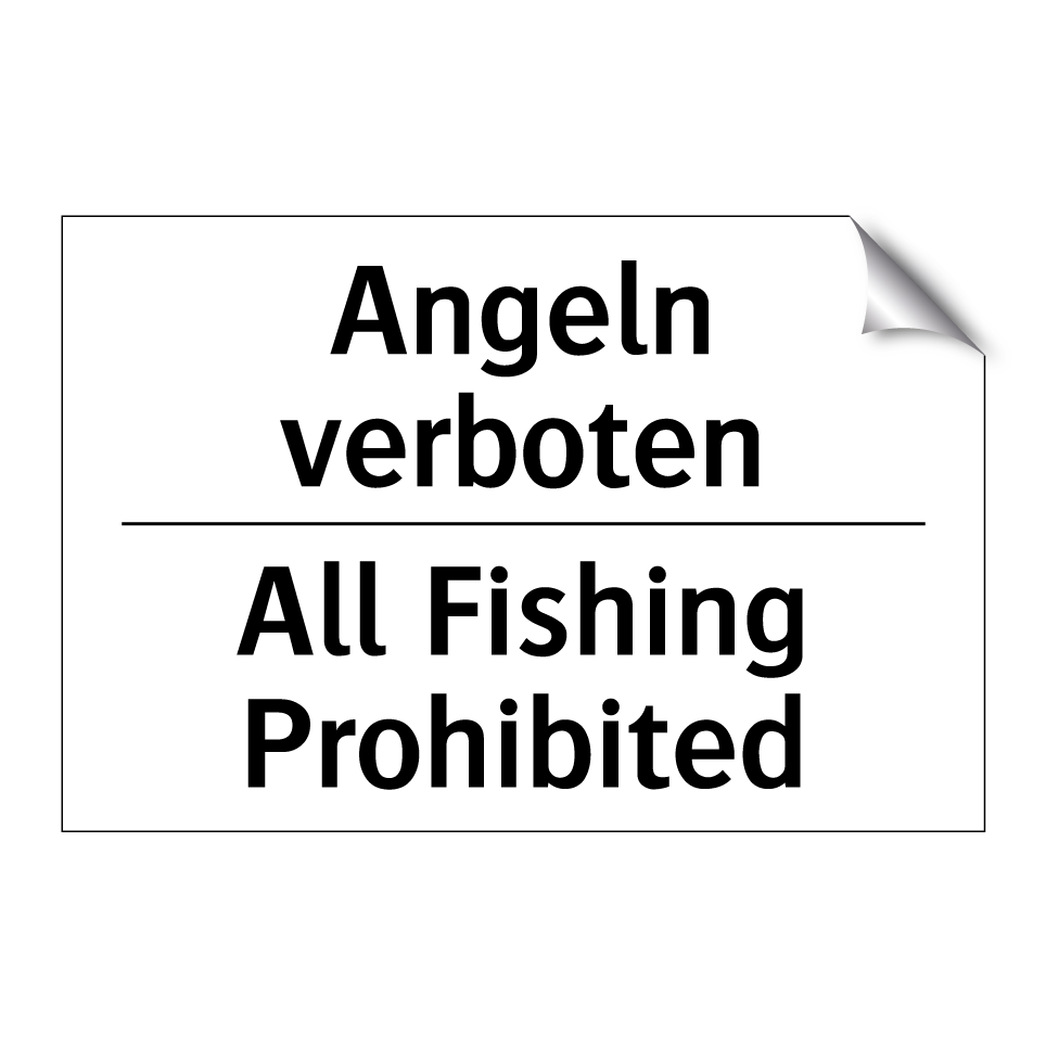 Zweisprachiges Verbotsschild mit deutschem Text Angeln verboten und englischem Text All Fishing Prohibited