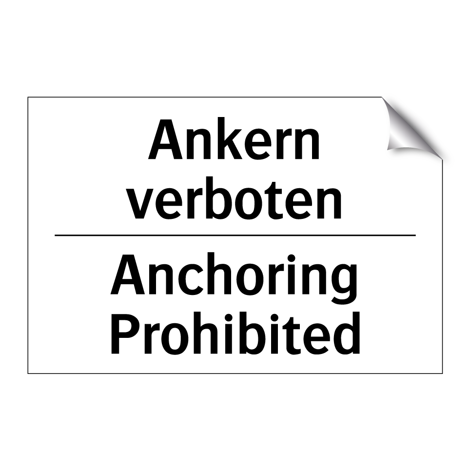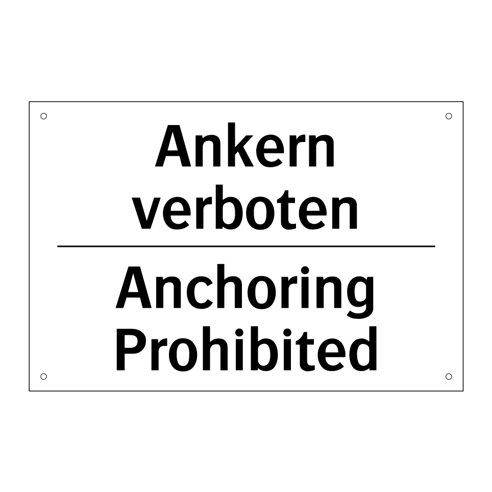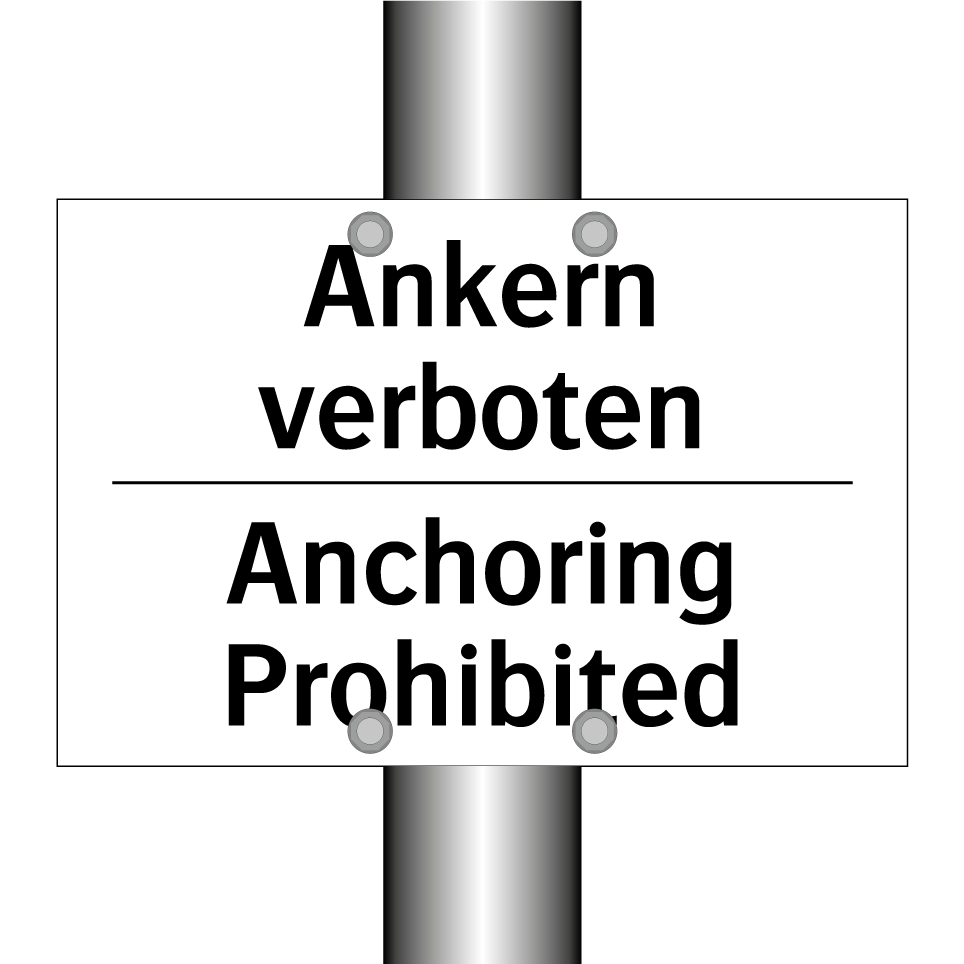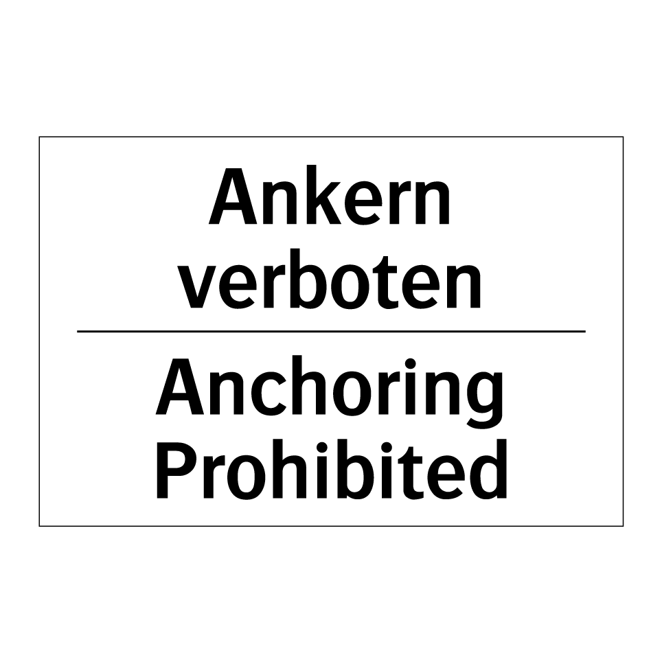 Zweisprachiges Verbotsschild mit deutschem Text Ankern verboten und englischem Text Anchoring Prohibited