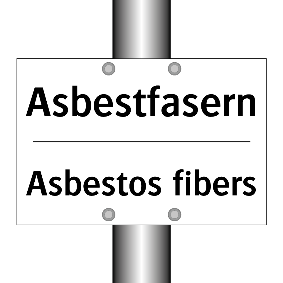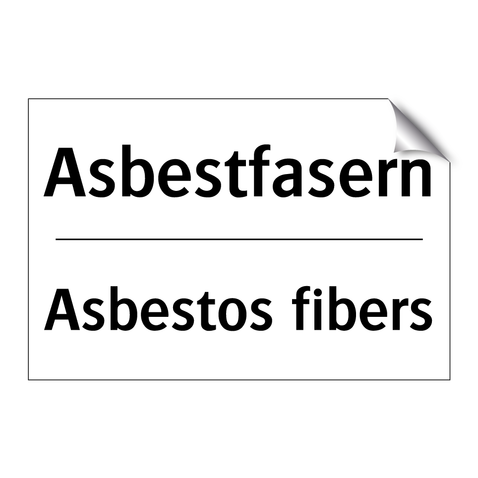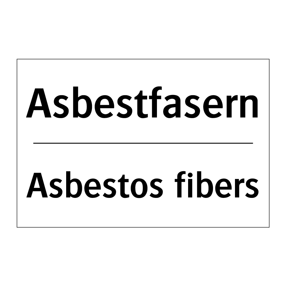 Zweisprachiges Verbotsschild mit deutschem Text Asbestfasern und englischem Text Asbestos fibers